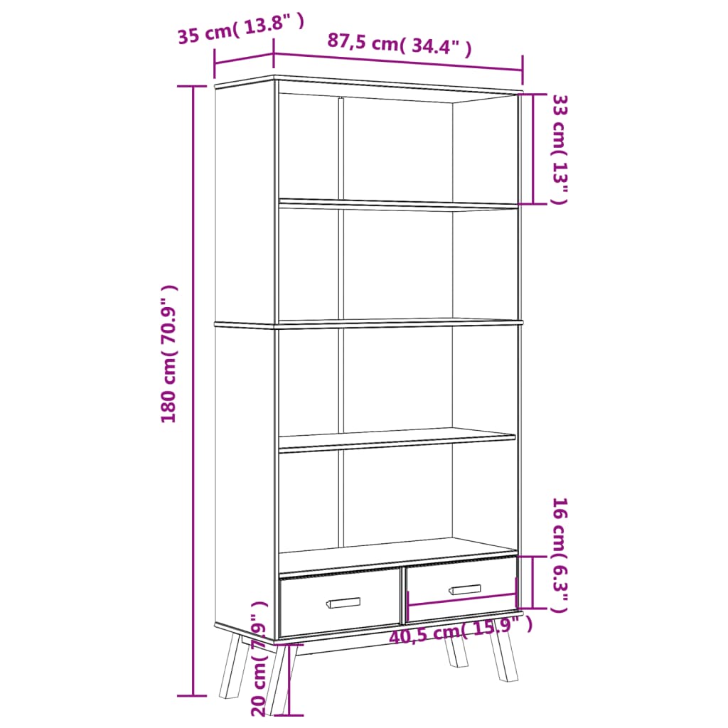 Estante c/ 4 prateleiras OLDEN pinho maciço cinzento/castanho