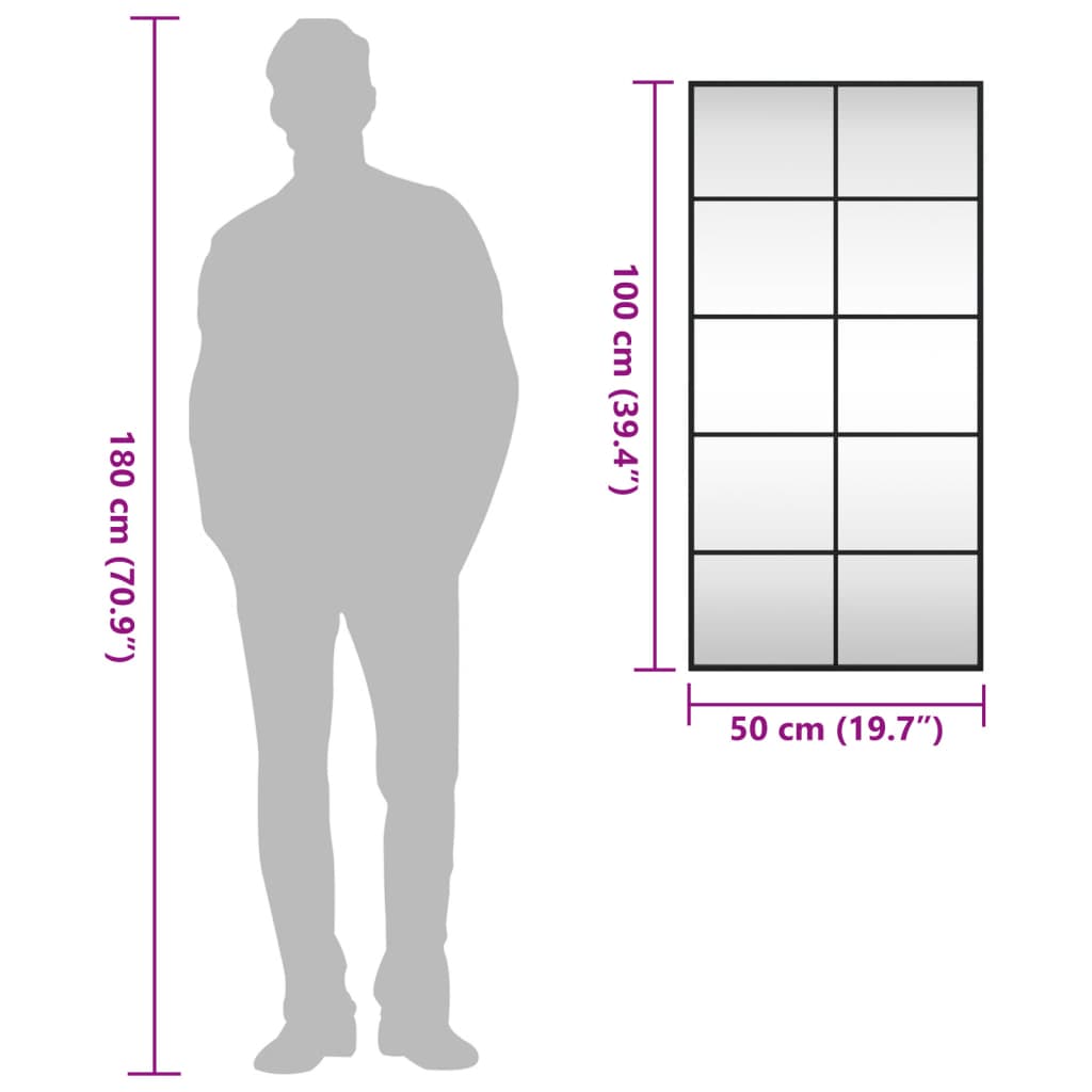 Espelho de parede retangular 50x100 cm ferro preto