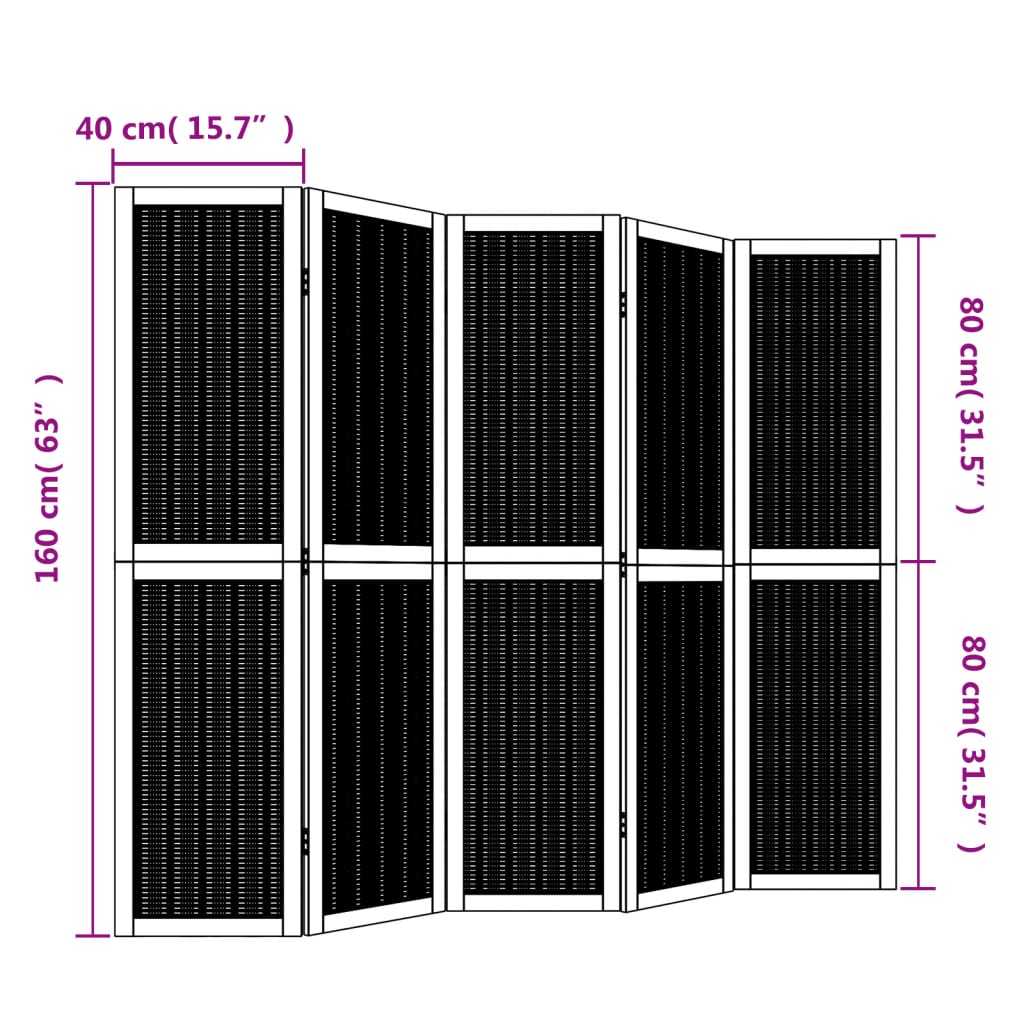 Biombo c/ 5 painéis madeira de paulownia maciça castanho