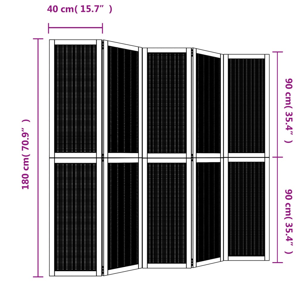 Biombo c/ 5 painéis madeira de paulownia maciça castanho
