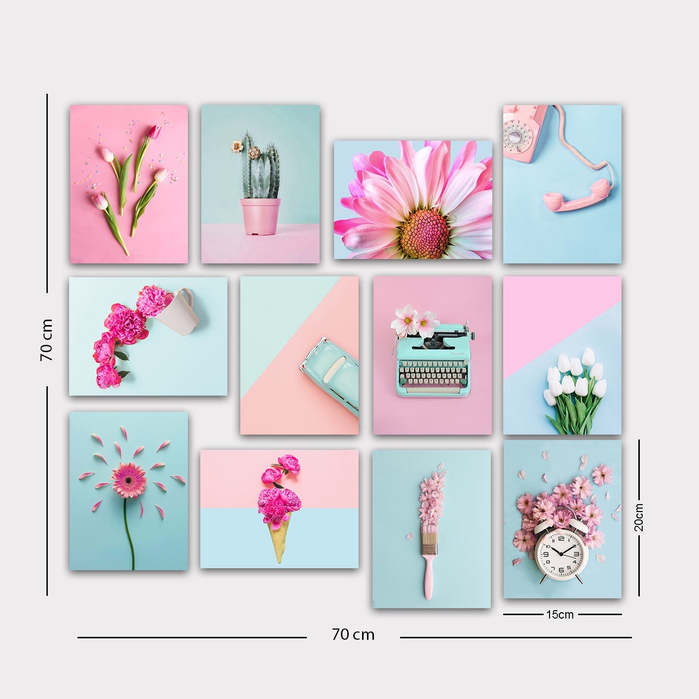 Transforme os seus espaços com este extraordinário conjunto decorativo de 12 peças em MDF, uma solução artística perfeita para quem procura sofisticação e versatilidade na decoração de interiores. Este conjunto multicolor oferece infinitas possibilidades de composição, permitindo criar galerias personalizadas que refletem o seu estilo único.