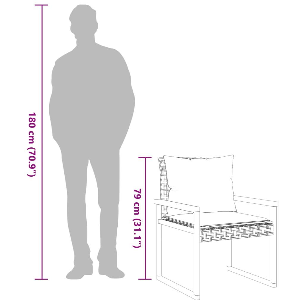 3 pcs conj. bistrô c/ almofadões vime PE/acácia mistura beges