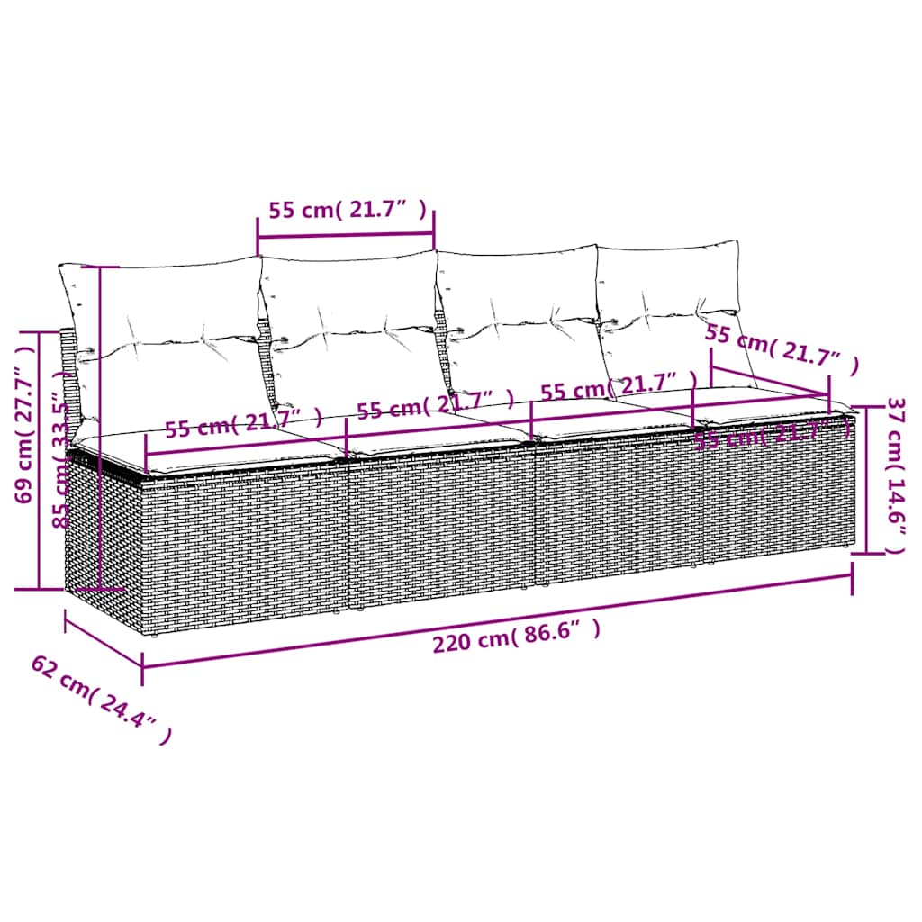 Sofá de jardim de 4 lugares com almofadões vime PE bege