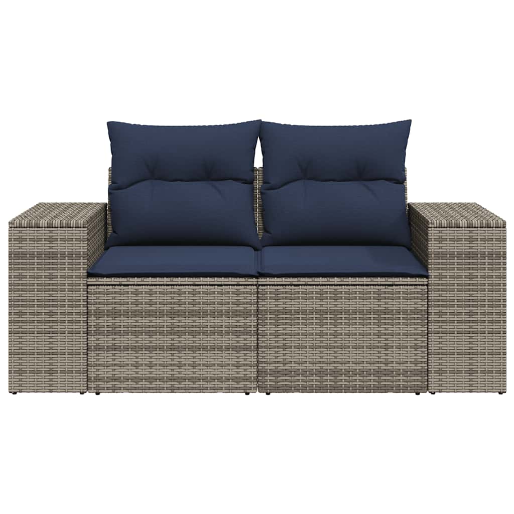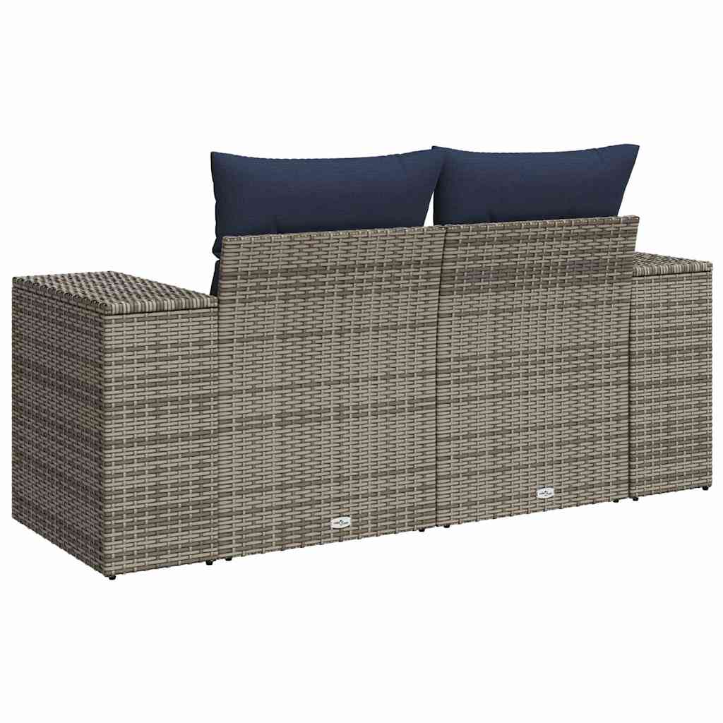 Sofá de jardim de 2 lugares com almofadões vime PE cinzento