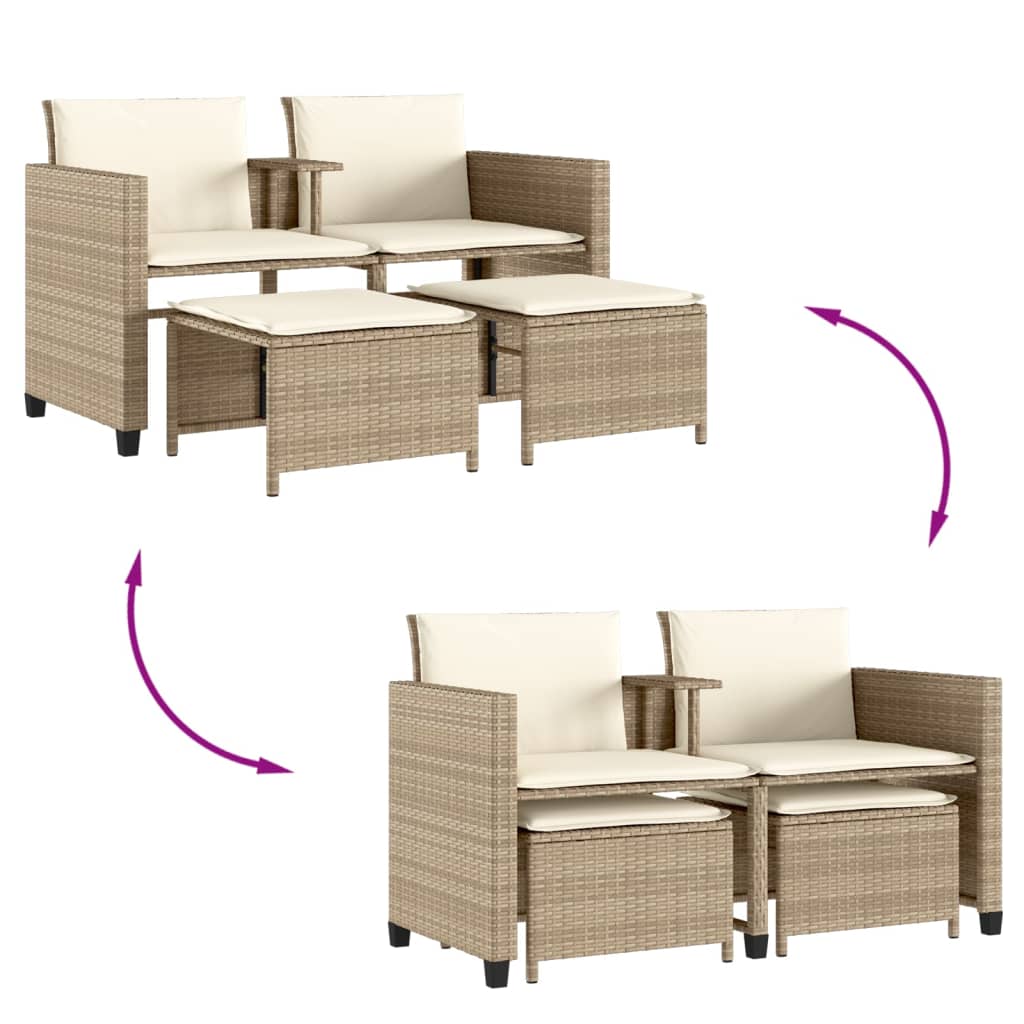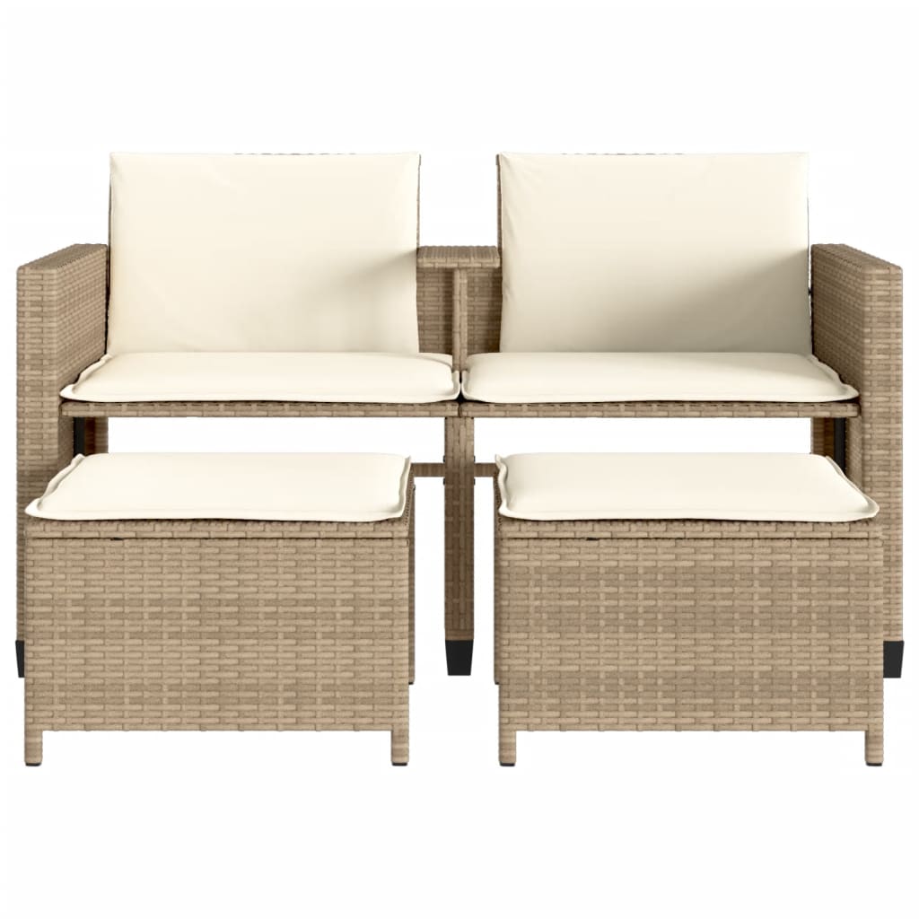 Sofá de jardim de 2 lugares com mesa e bancos vime PE bege