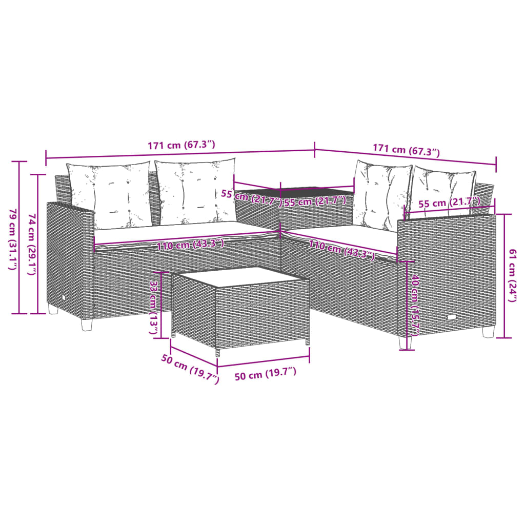 - Dimensões: 171 x 171 x 74 cm (L x P x A)