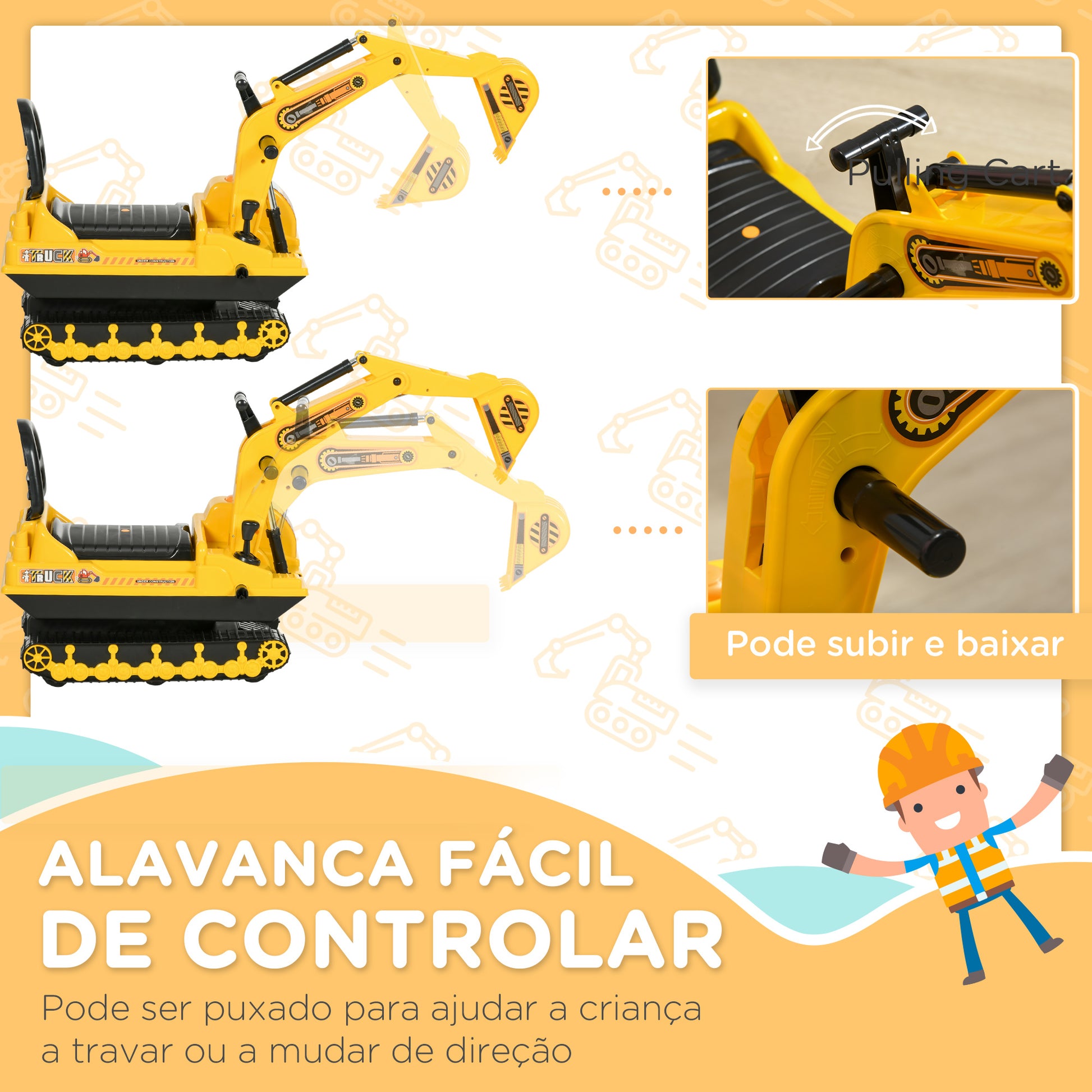Carro Escavadora Sem Pedais – 78x24x58,5 cm – Amarelo – Polipropileno e ABS