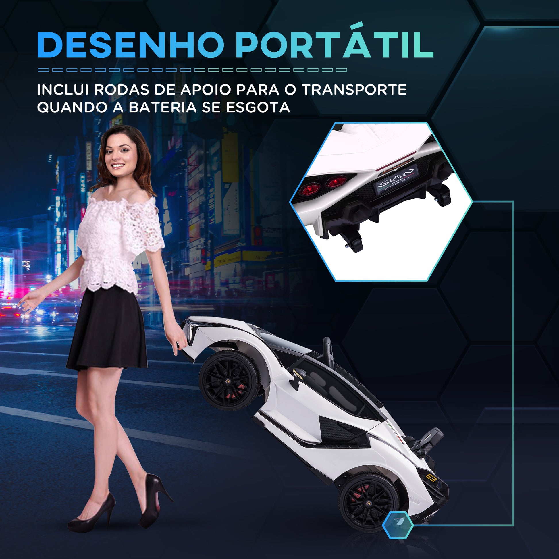 Proporcione uma experiência única e segura de condução para os seus filhos com este Carro Elétrico Infantil inspirado no famoso modelo Lamborghini SIAN. Com medidas de 108x62x40 cm e na elegante cor branca, este carro elétrico vai garantir diversão ilimitada para as crianças.