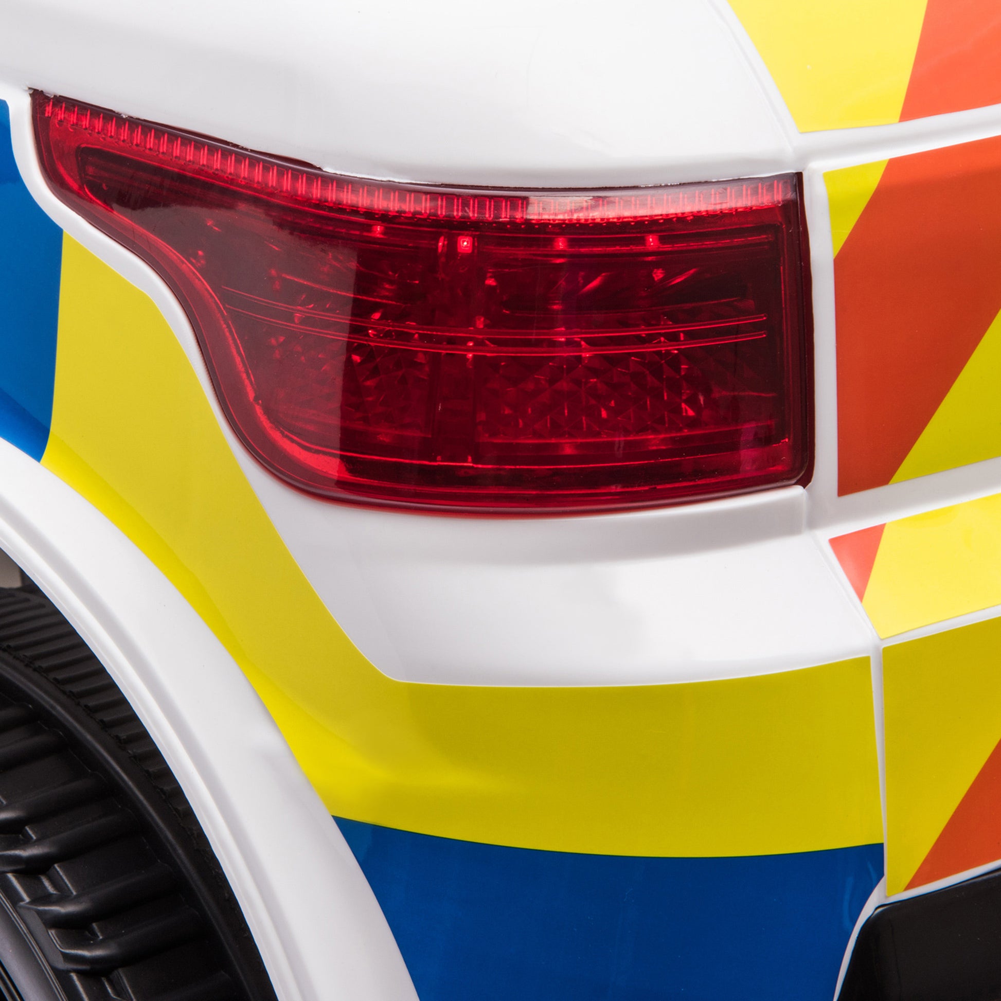 Este carro elétrico infantil com design de carro de polícia proporciona uma experiência de condução realista para crianças acima de 3 anos. Equipado com buzina, volante, faróis funcionais e sirene com efeitos sonoros, torna a brincadeira ainda mais divertida.