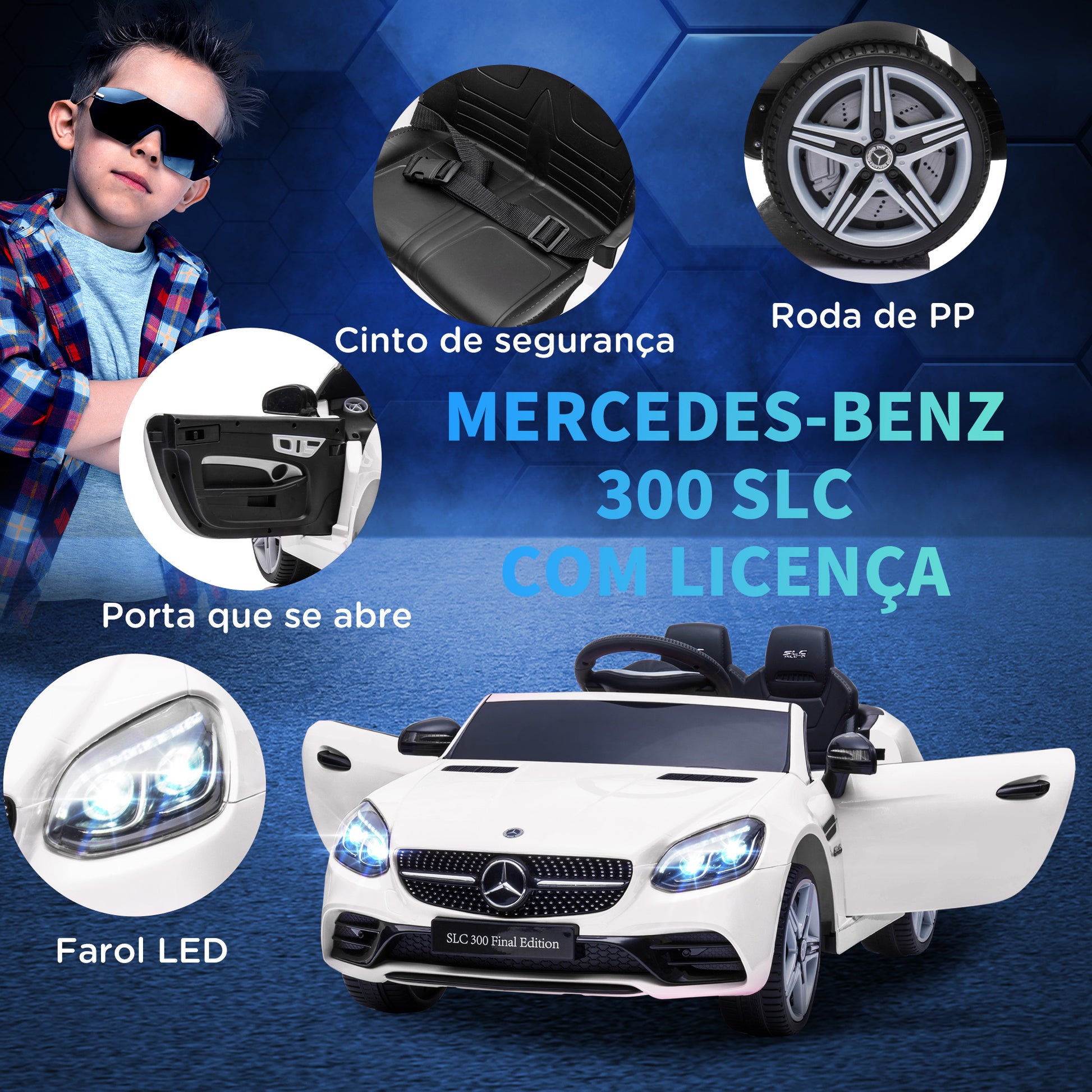Traga diversão e segurança para a vida dos seus pequenos com este Carro Elétrico Infantil Mercedes SLC 300. Com licença oficial da Mercedes, este veículo elétrico é repleto de detalhes realistas e recursos incríveis.