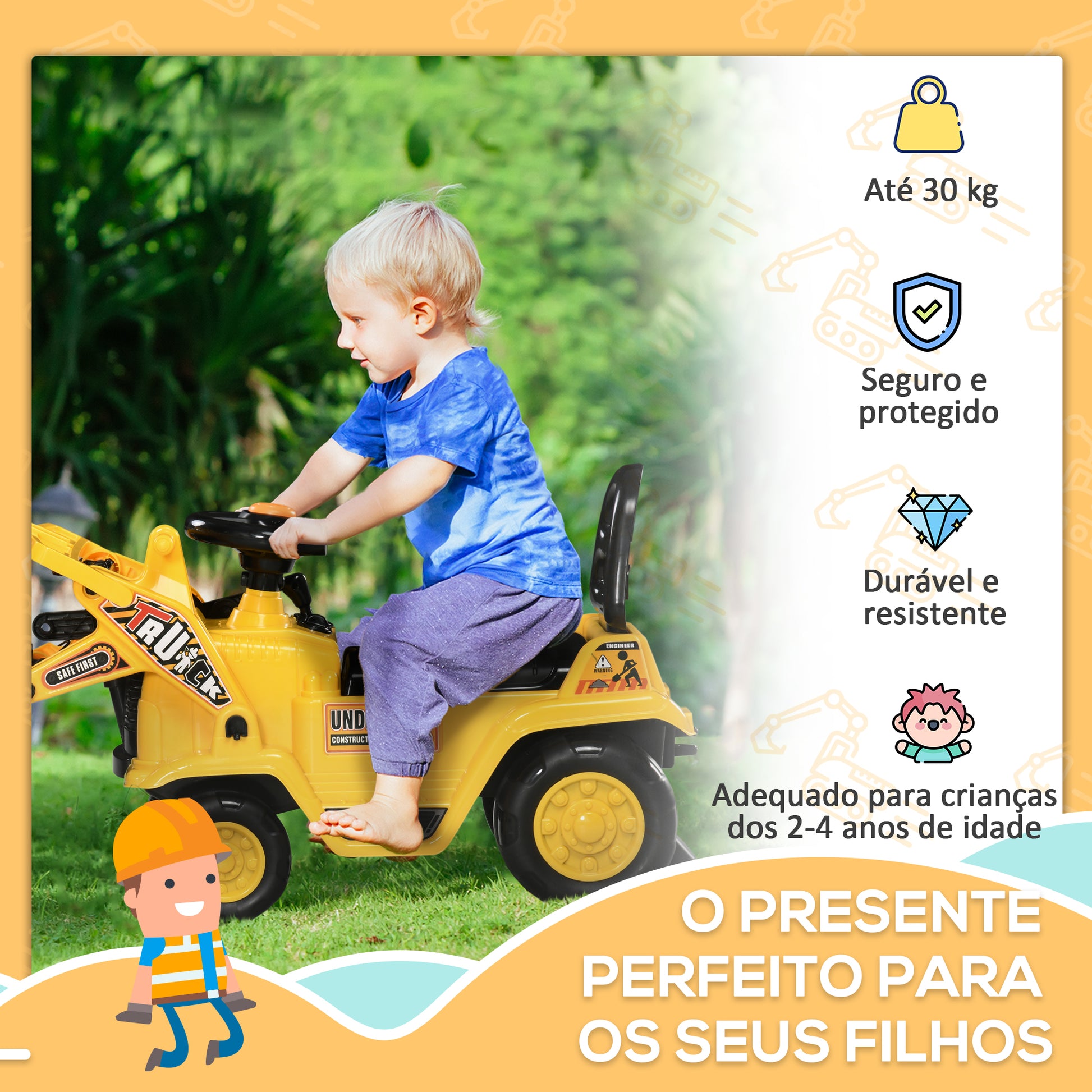 Carro Andador Infantil Escavadora Amarela 83x27x39 cm