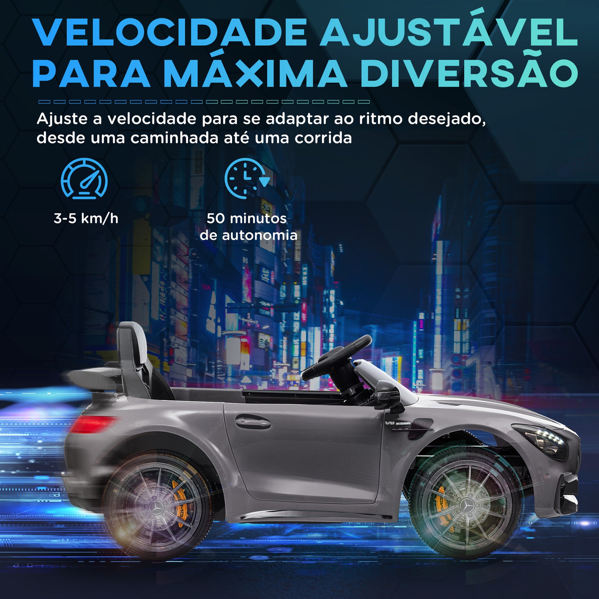 - Benefícios: Licença Mercedes-Benz AMG GTR, velocidade ajustável entre 3-5 km/h, rodas de apoio para fácil transporte, autonomia de até 50 min, luzes dianteiras e traseiras, buzina e opções de música para diversão garantida, cinto de segurança para maior segurança.