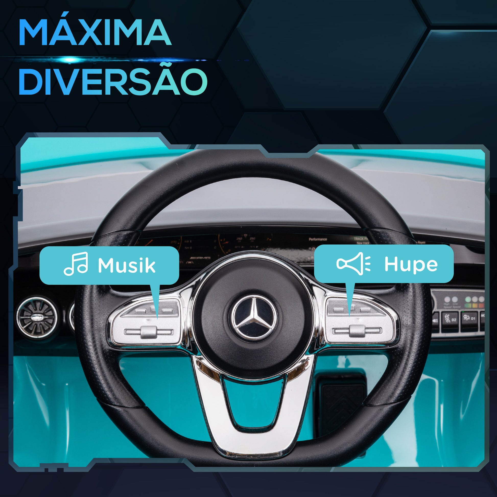 Proporcione uma experiência de condução autêntica e emocionante para os pequenos com este Carro Elétrico Infantil licenciado pela Mercedes·AMG CLA 45, na cor Azul Turquesa e medidas totais de 110x61x45 cm.
