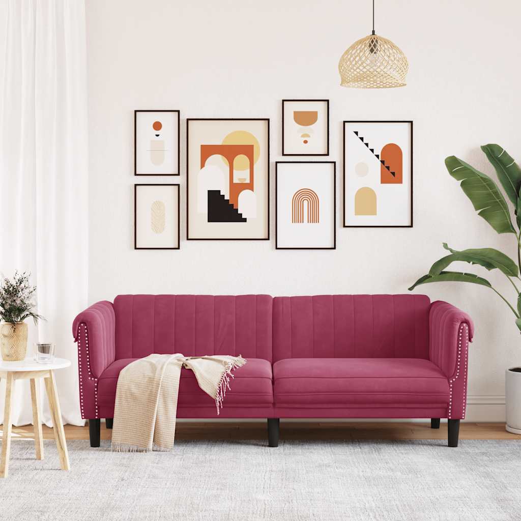 Sofá de 3 lugares veludo vermelho tinto