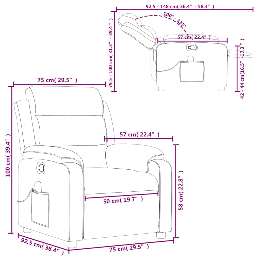 - Estrutura sólida e estável: a estrutura feita de madeira e metal proporciona uma estrutura forte e estável. Esta poltrona reclinável é confortável e durável.