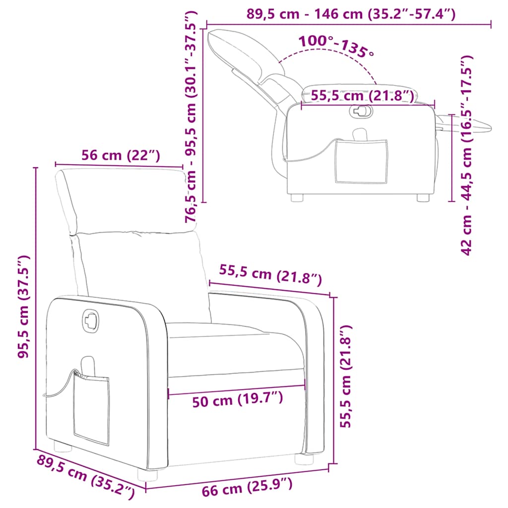 - Função de reclinação manual: esta poltrona reclinável possui uma pega no lado direito. Pode ajustar manualmente o encosto e o apoio de pés em qualquer posição, de acordo com as suas necessidades de conforto, ao puxar a pega. Este recurso permite uma inclinação máxima de 135 graus. Além disso, o encosto pode voltar para a posição original rápida e facilmente se puxar a pega.