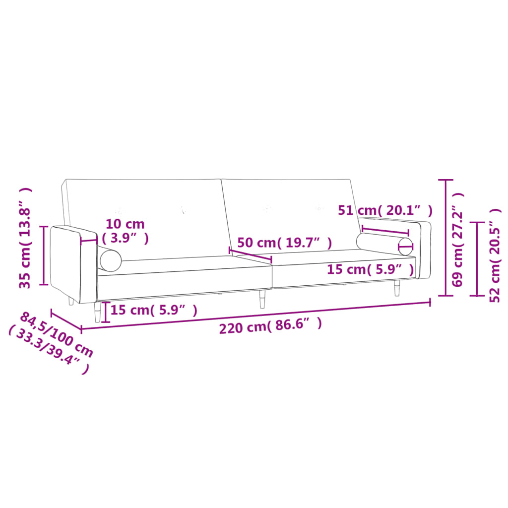 - Dimensões totais: 220 x 84,5 x 69 cm (C x L x A)