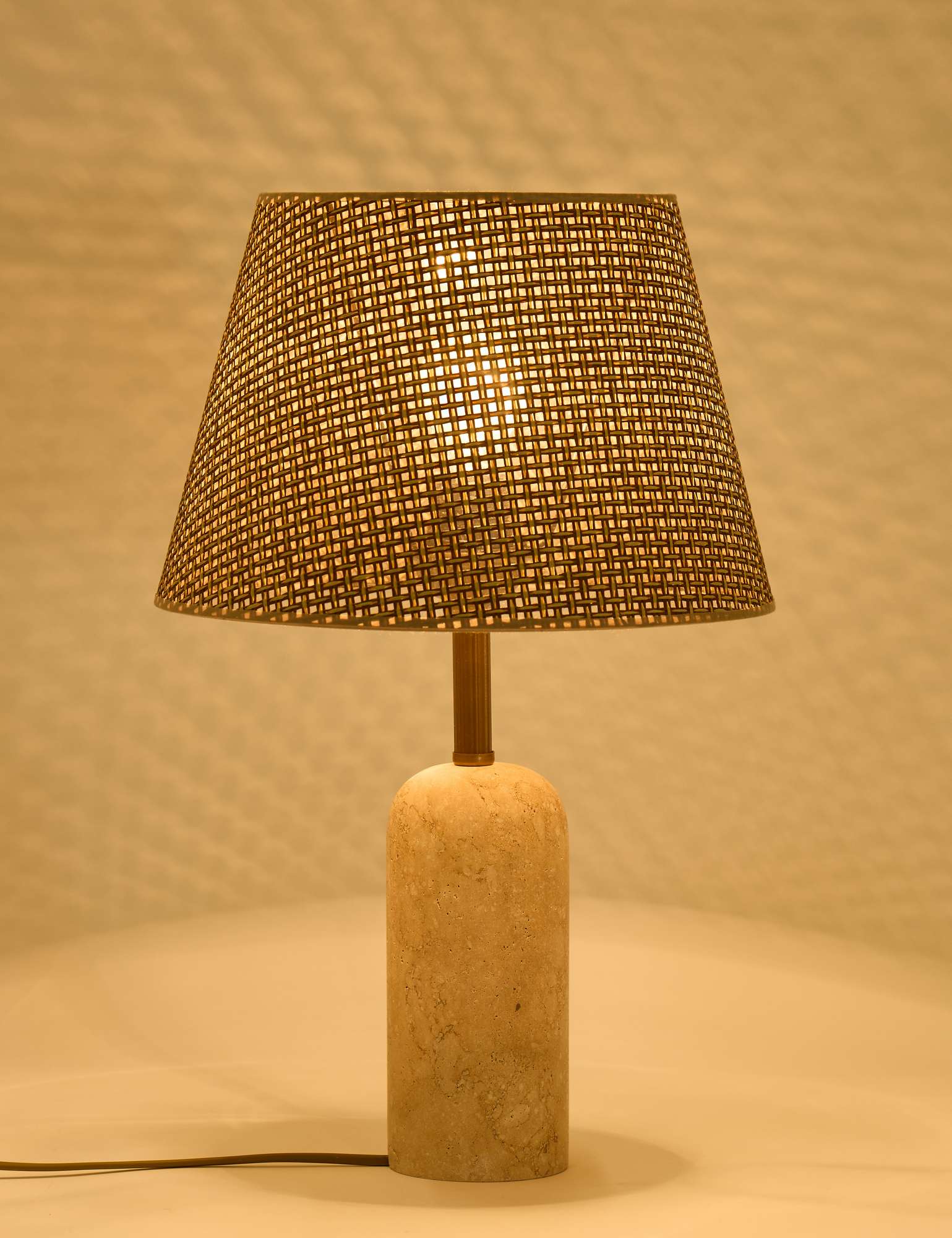 Transforme seu espaço em um oásis tranquilo com a luz suave e ambiente desta lâmpada de mesa. Os tons quentes do corpo de travertino e da tampa de vime criam uma atmosfera calmante, perfeita para relaxar após um longo dia. Se você está se aconchegando com um bom livro ou desfrutando de uma noite tranquila em casa, esta lâmpada ajudará a criar a ambiência perfeita.