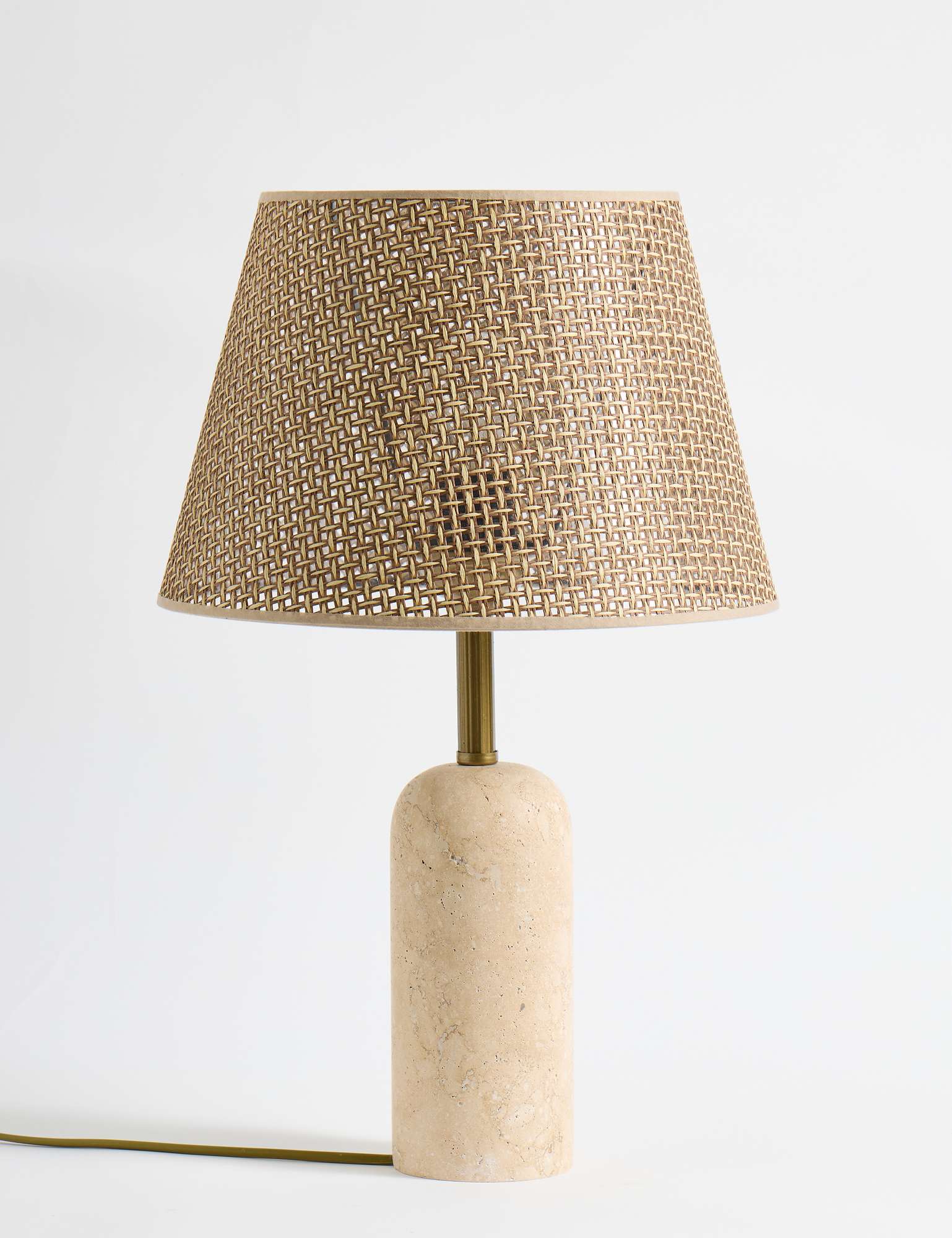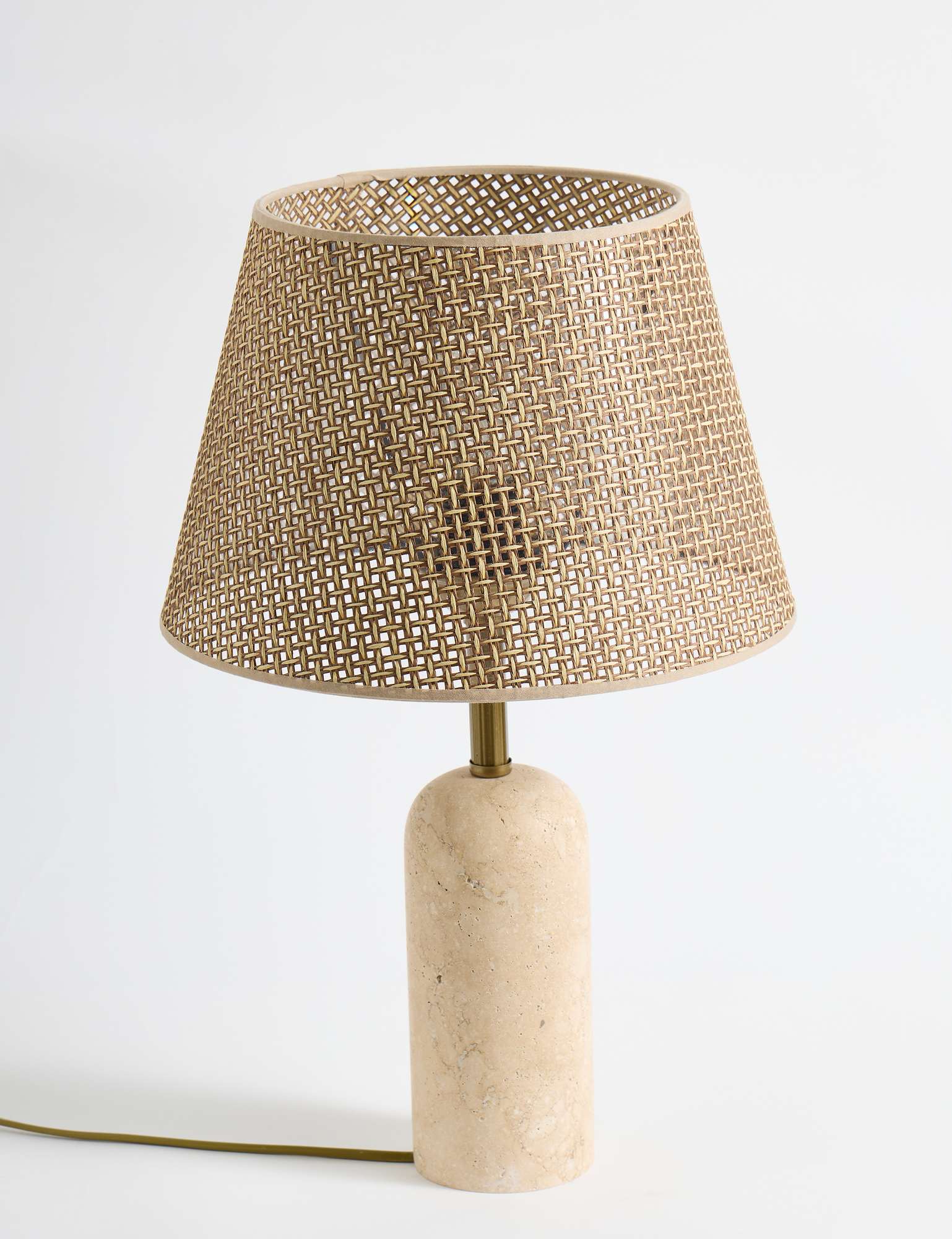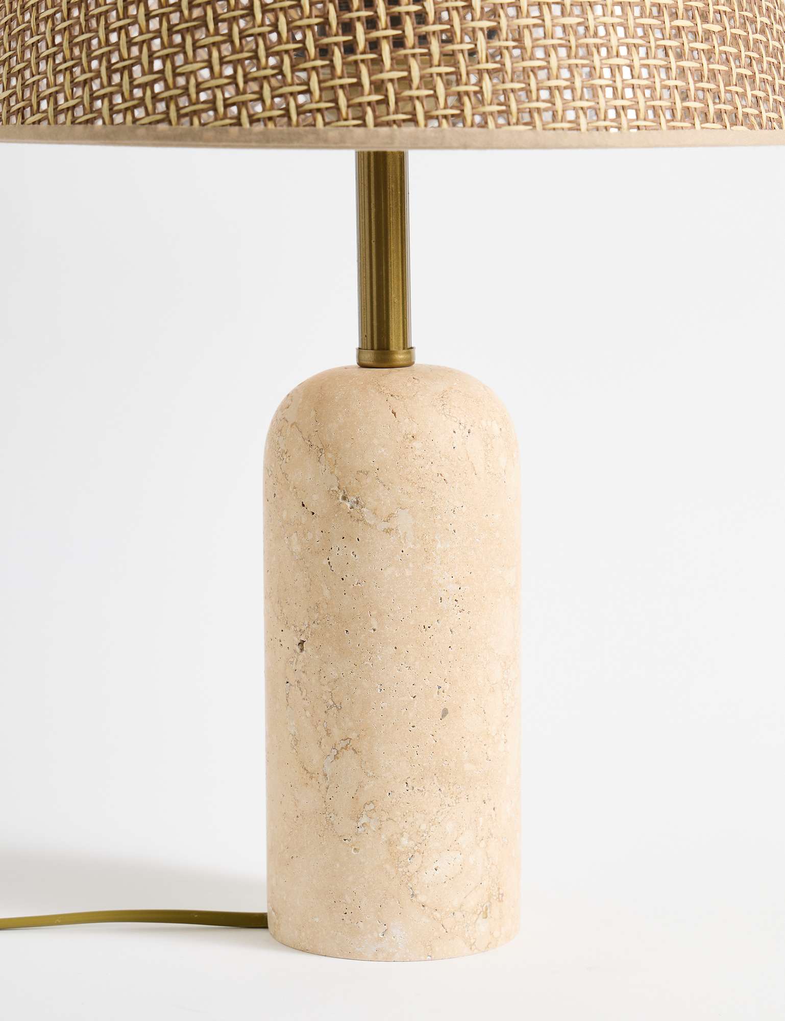 Adicione um toque de luxo à sua sala de estar, quarto ou escritório com esta requintada lâmpada de mesa. A combinação única de travertino e vime cria um apelo visual marcante que instantaneamente elevará sua decoração. Se você está procurando criar um canto de leitura aconchegante ou uma peça de destaque estilosa, esta lâmpada certamente impressionará.