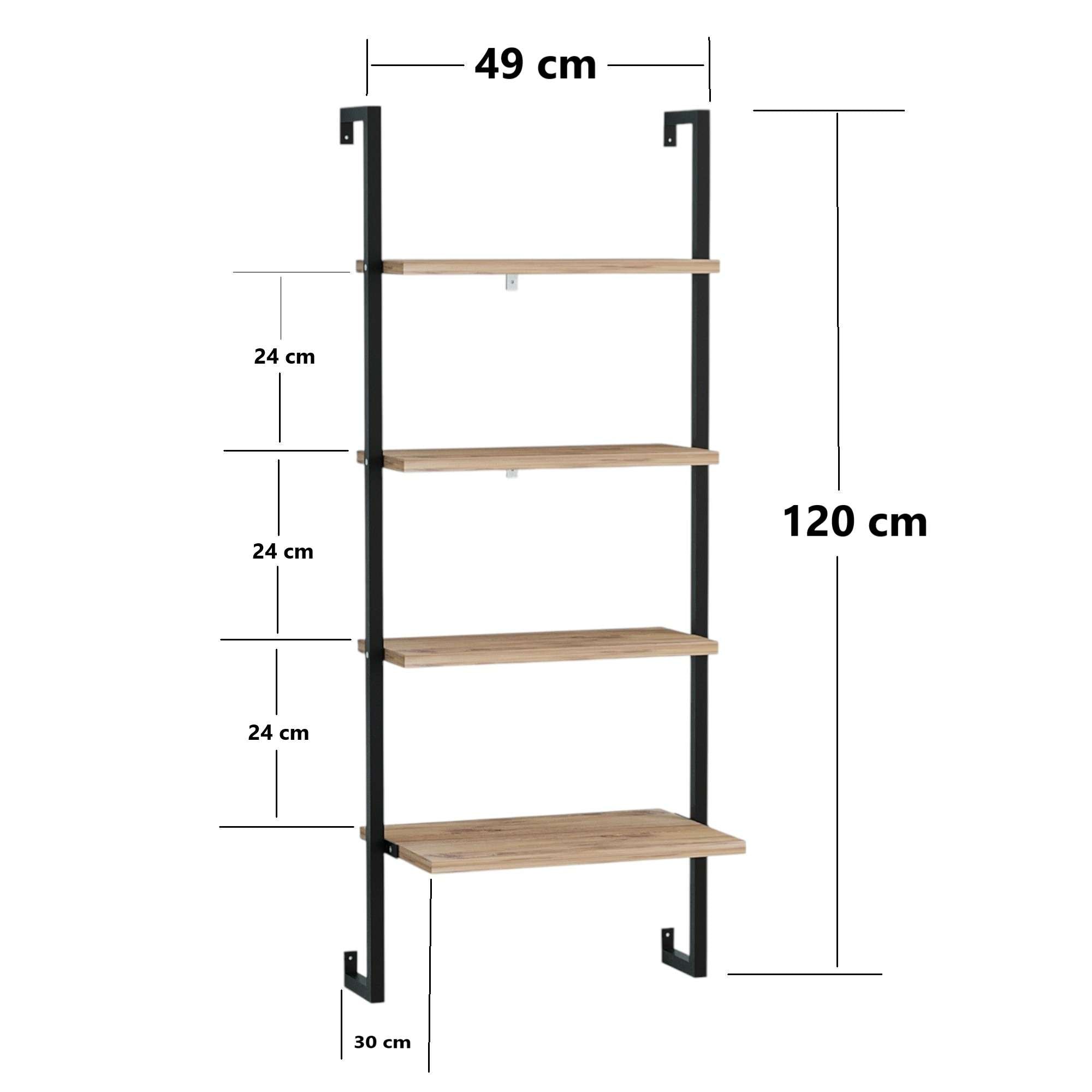 Com uma largura de 49 cm, uma altura de 120 cm e uma profundidade de 20 cm, esta prateleira de parede oferece um espaço amplo para expor livros, plantas, molduras para fotografias e outros objectos decorativos. O seu design inovador permite-lhe mostrar o seu estilo pessoal, mantendo os seus pertences organizados e facilmente acessíveis.