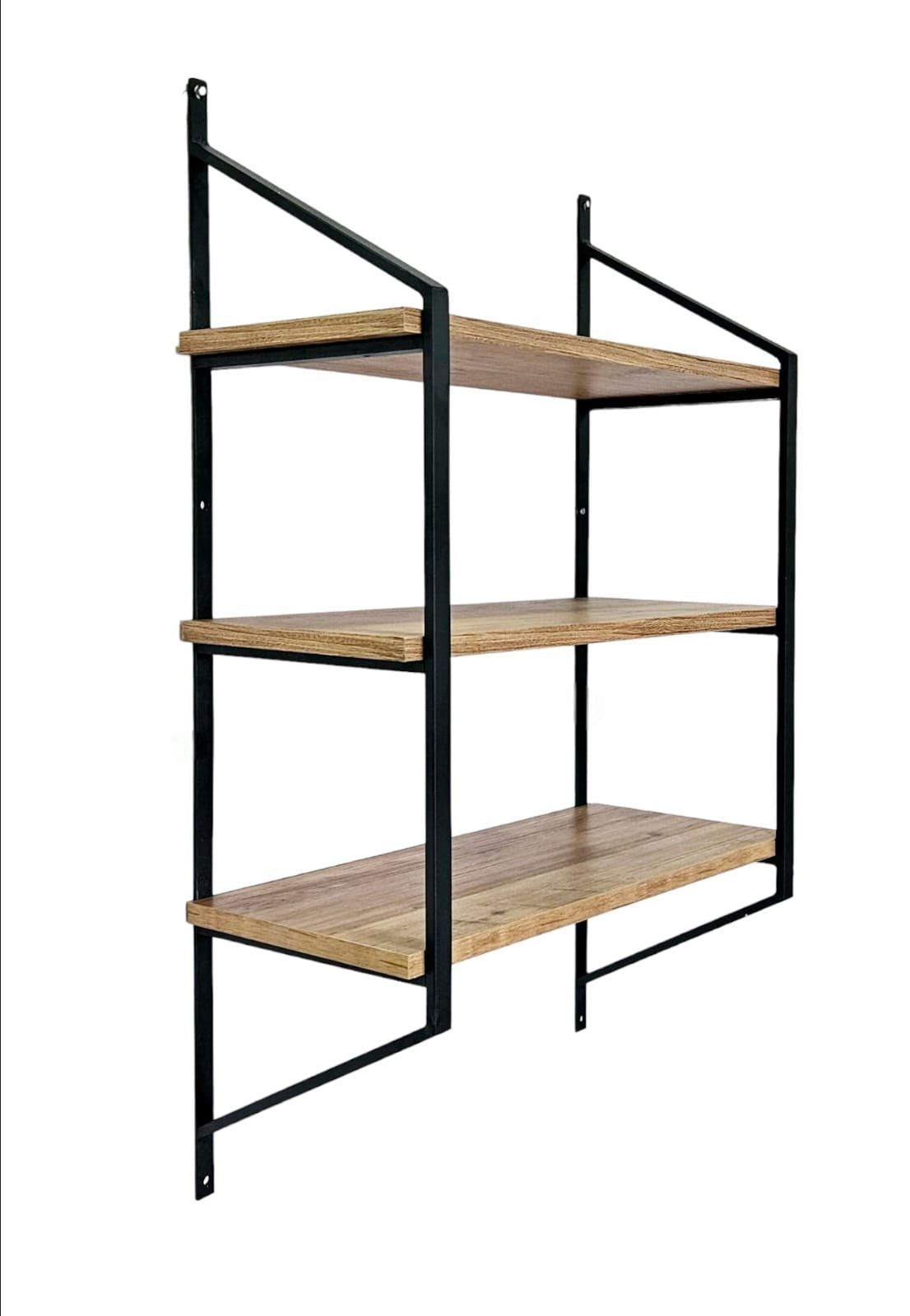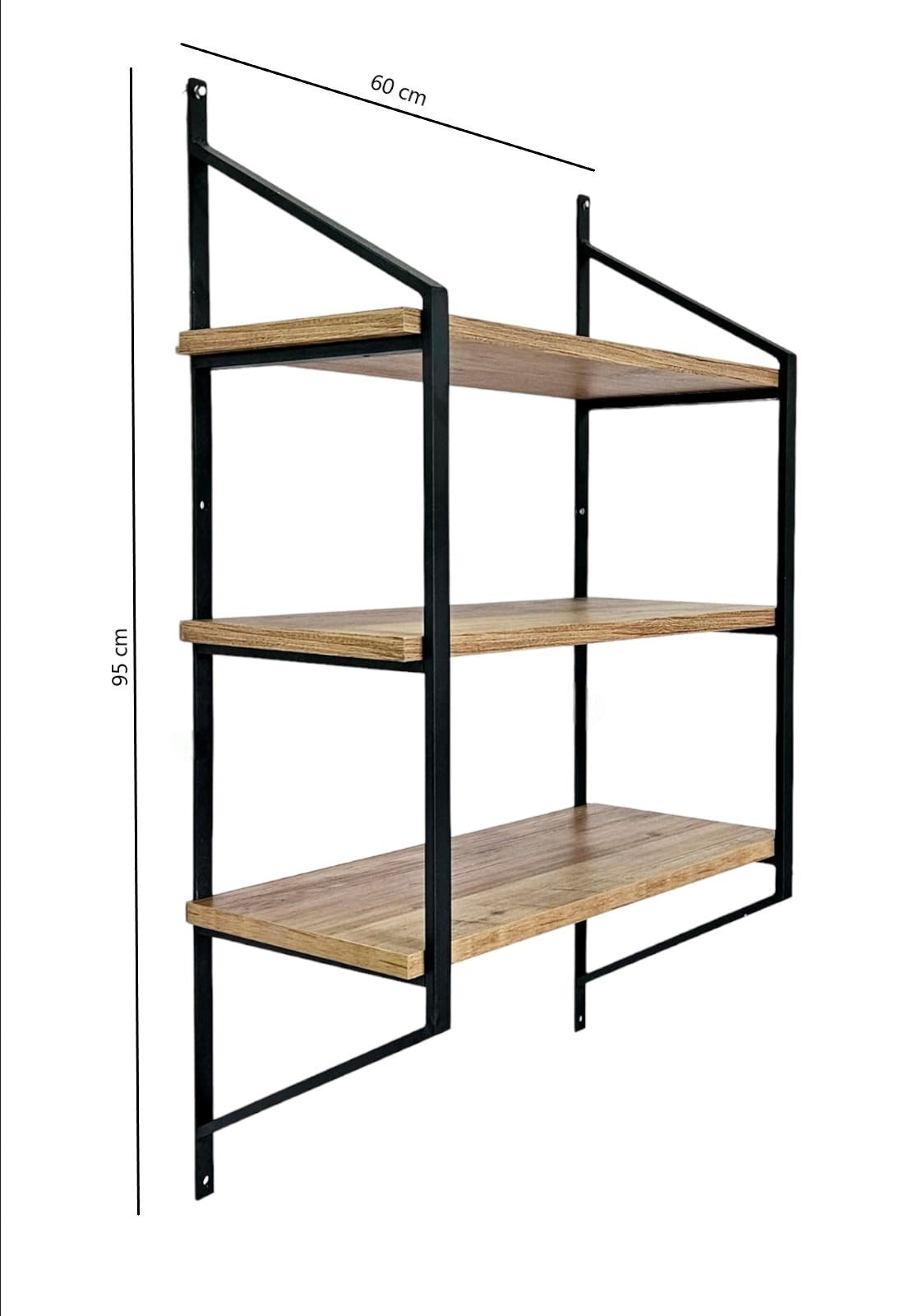 Prateleira de Parede – 60 cm x 95 cm x 28 cm – Preto e Pinho Atlântico – Painéis de Partículas e Metal