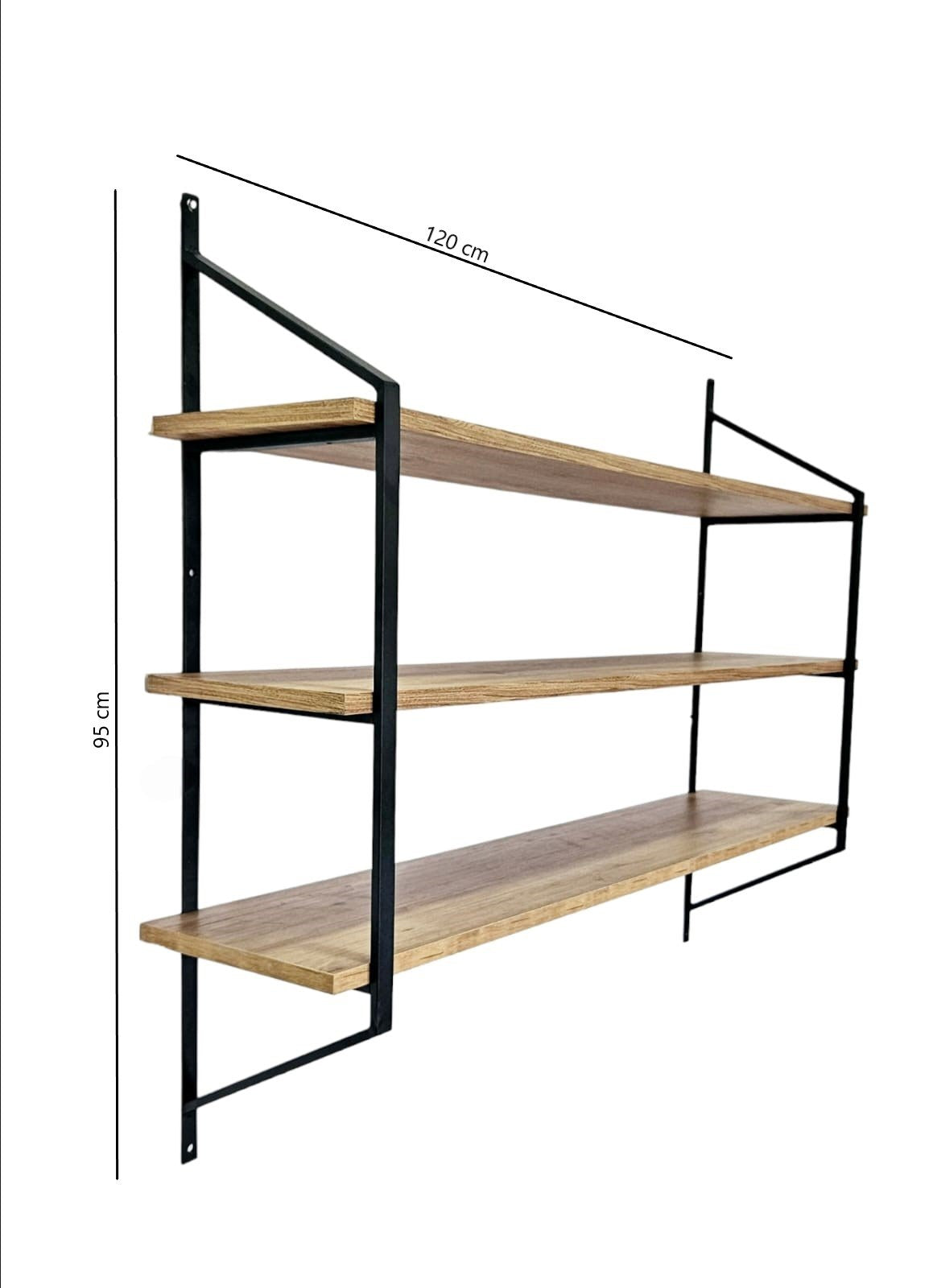 Com uma largura de 120 cm, uma altura de 95 cm e uma profundidade de 28 cm, a nossa prateleira de parede oferece um amplo espaço de arrumação para todos os seus objectos. Quer pretenda expor os seus livros favoritos, exibir objectos decorativos ou organizar os seus artigos essenciais, esta prateleira é a solução perfeita.