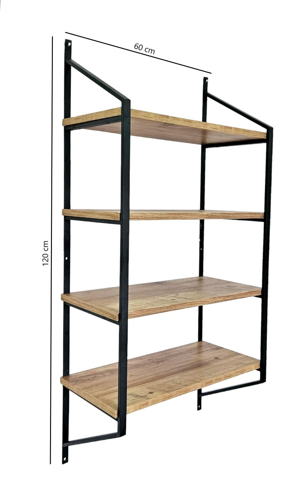 A prateleira de parede apresenta uma mistura perfeita de cores preto e pinho atlântico, criando um contraste visual deslumbrante que complementará sem esforço qualquer decoração interior. As suas dimensões espaçosas de 60 cm de largura, 120 cm de altura e 28 cm de profundidade proporcionam um espaço amplo para expor os seus livros, molduras para fotografias, plantas e muito mais.