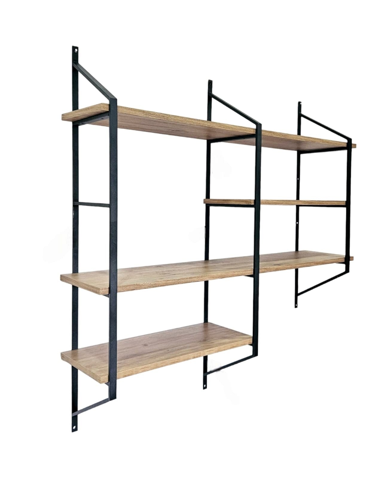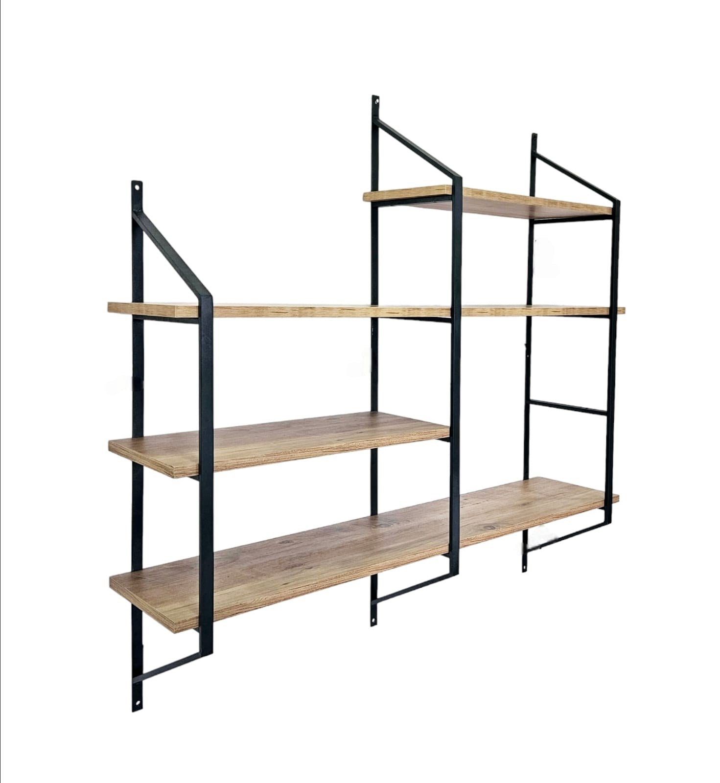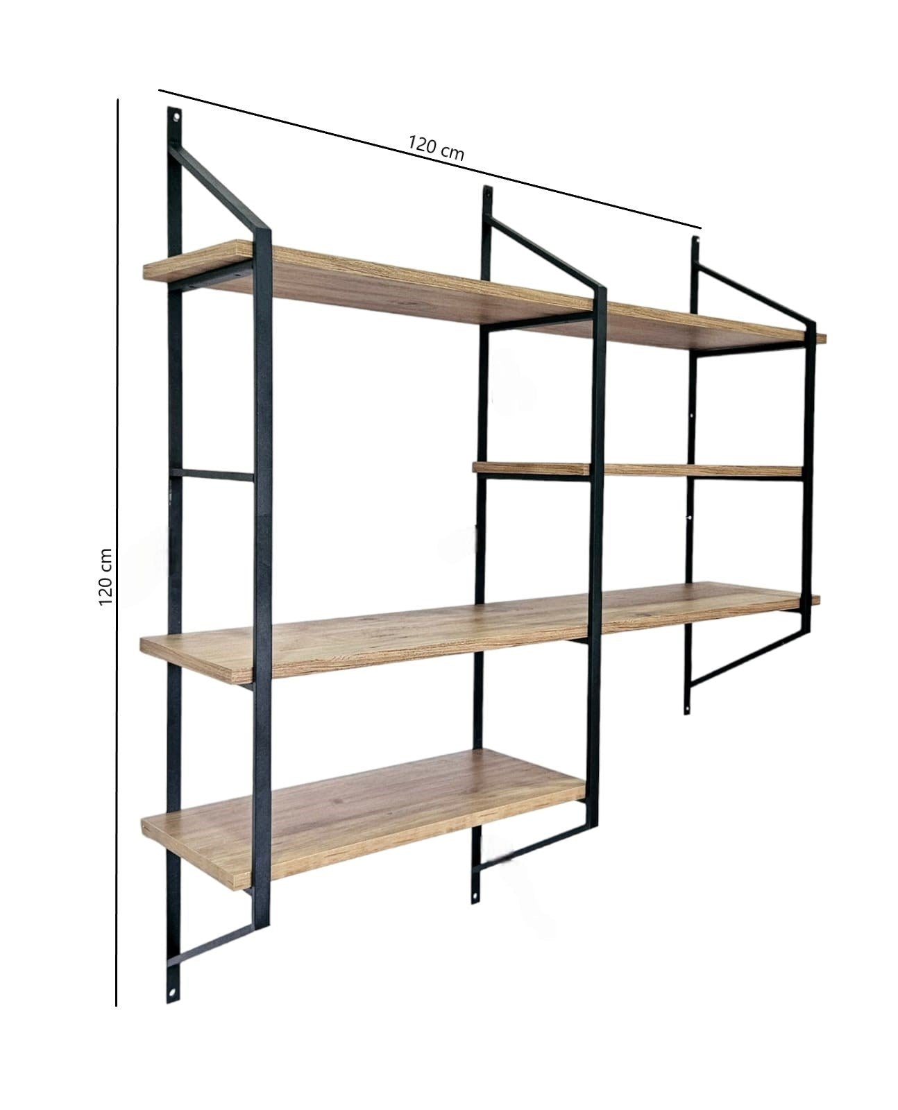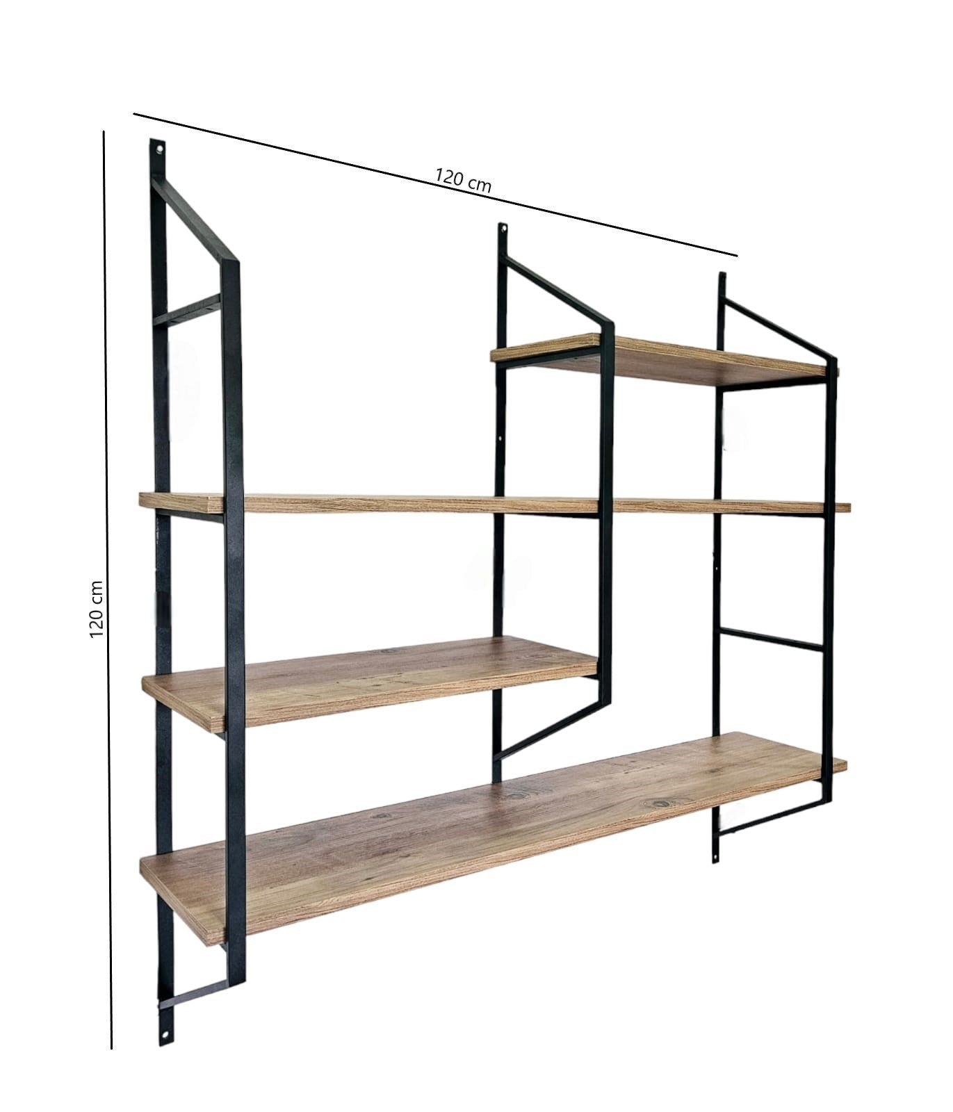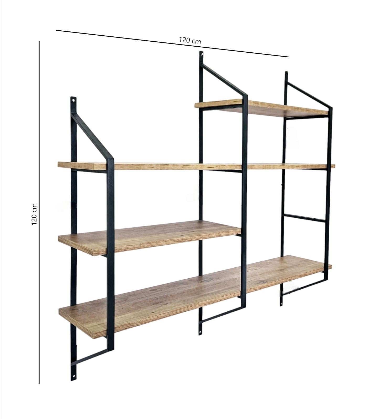 Prateleira de parede – 120 cm x 120 cm x 28 cm – Preto e Pinho Atlântico – Metal e Painel de Partículas