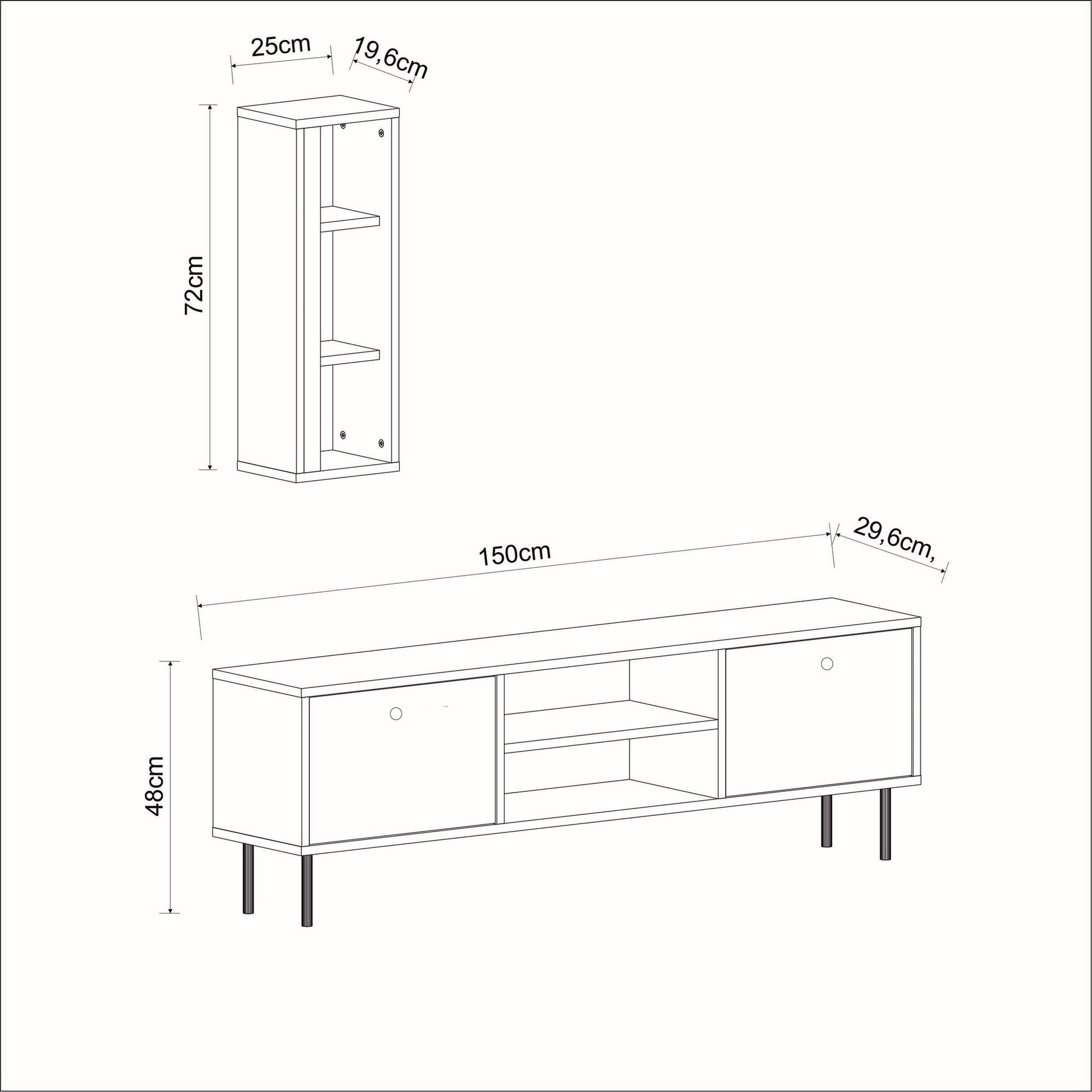 Fabricado a partir de painéis de partículas 100% revestidos a melamina, este móvel para televisão foi concebido para resistir ao teste do tempo. A espessura de 18 mm garante durabilidade e estabilidade, assegurando que o seu investimento durará muitos anos. Fique descansado sabendo que o seu móvel de TV é fabricado com materiais de alta qualidade, concebidos para resistir à utilização diária.