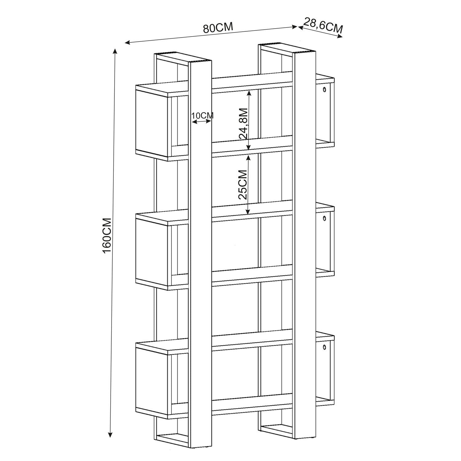 Amplo Armazenamento: Com uma largura de 80 cm e uma altura de 160 cm, esta estante oferece amplo espaço de armazenamento para todos os seus livros, itens de decoração e muito mais. A espessura de 18 mm do painel de partículas revestido em 100% melamina garante durabilidade e robustez.