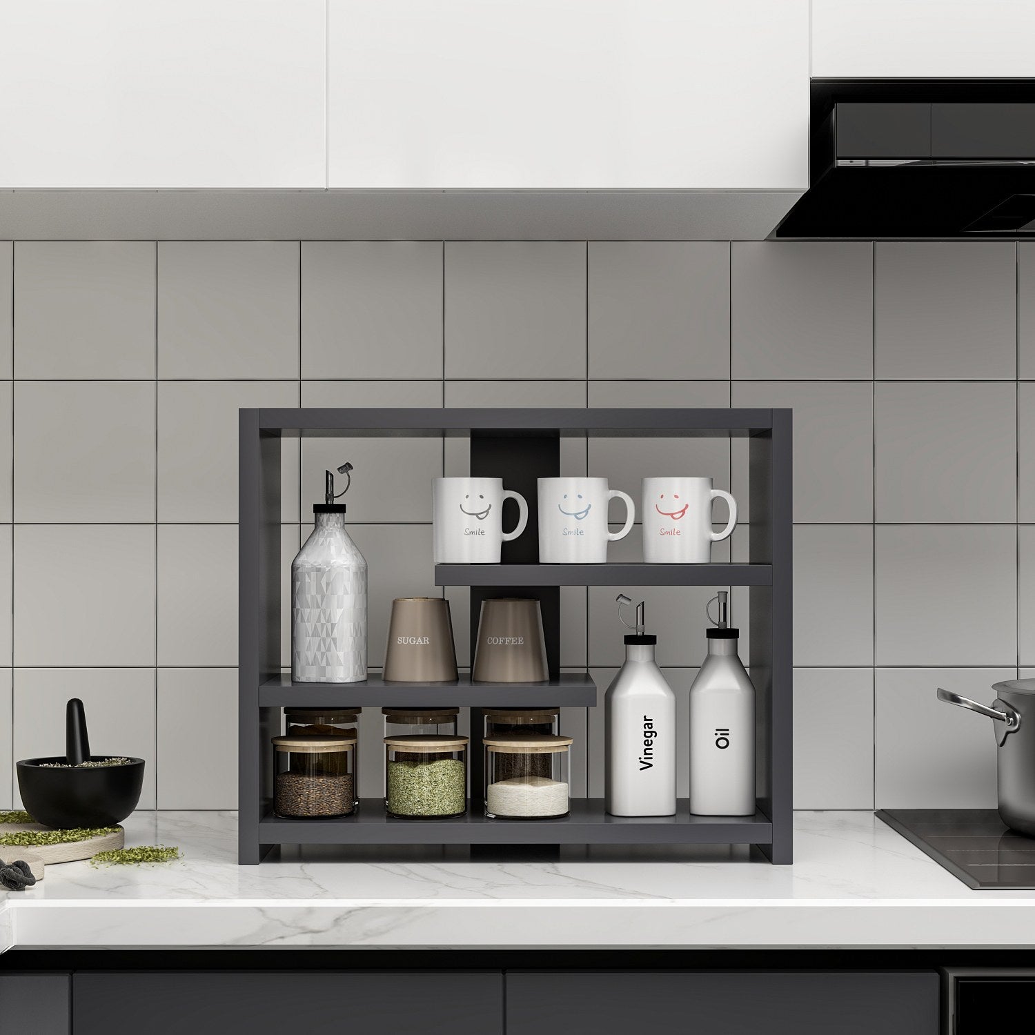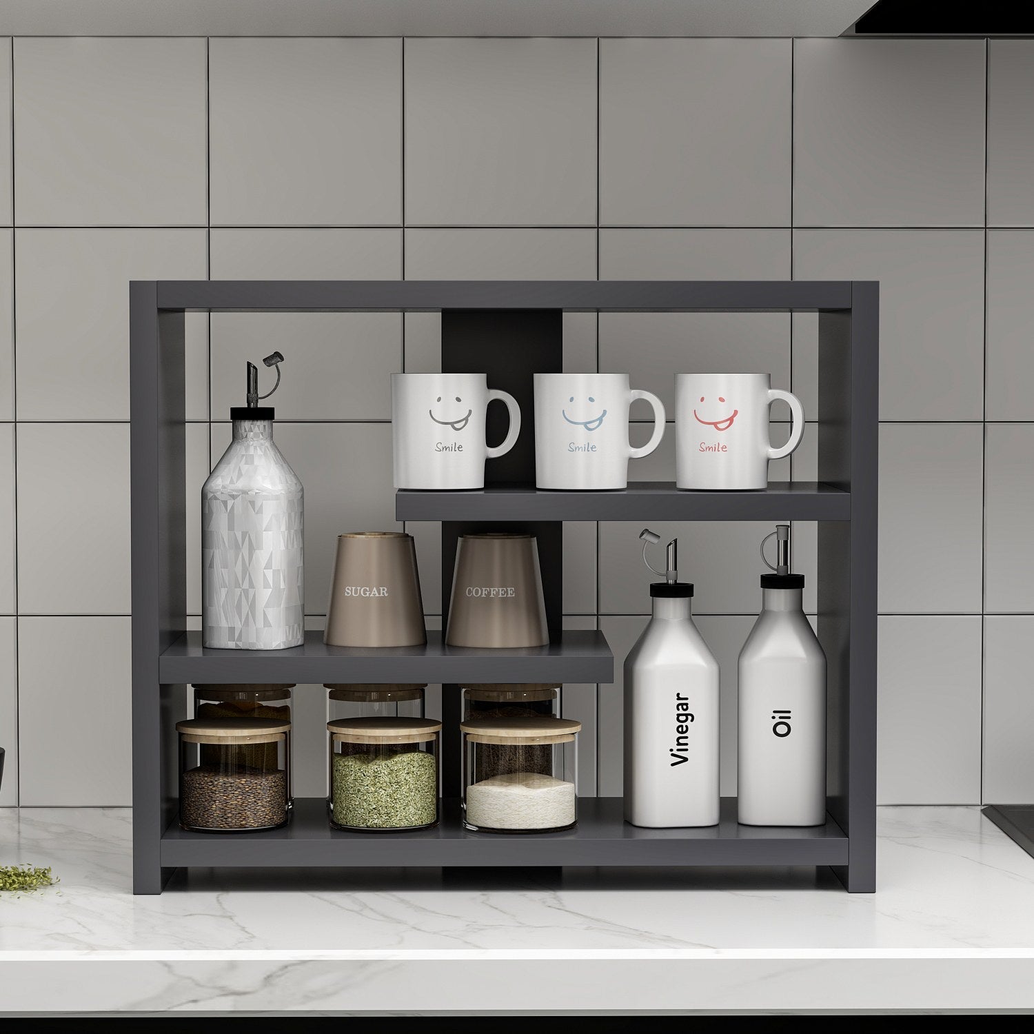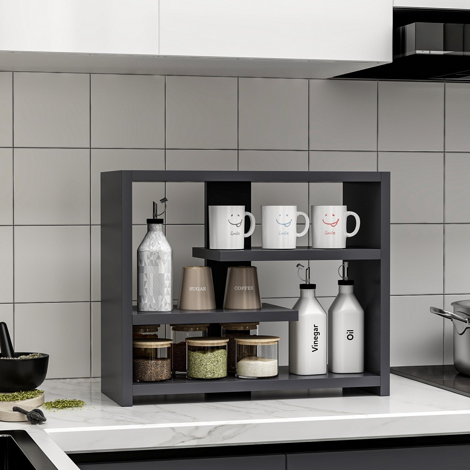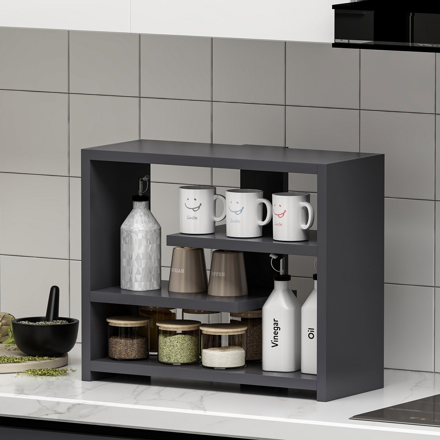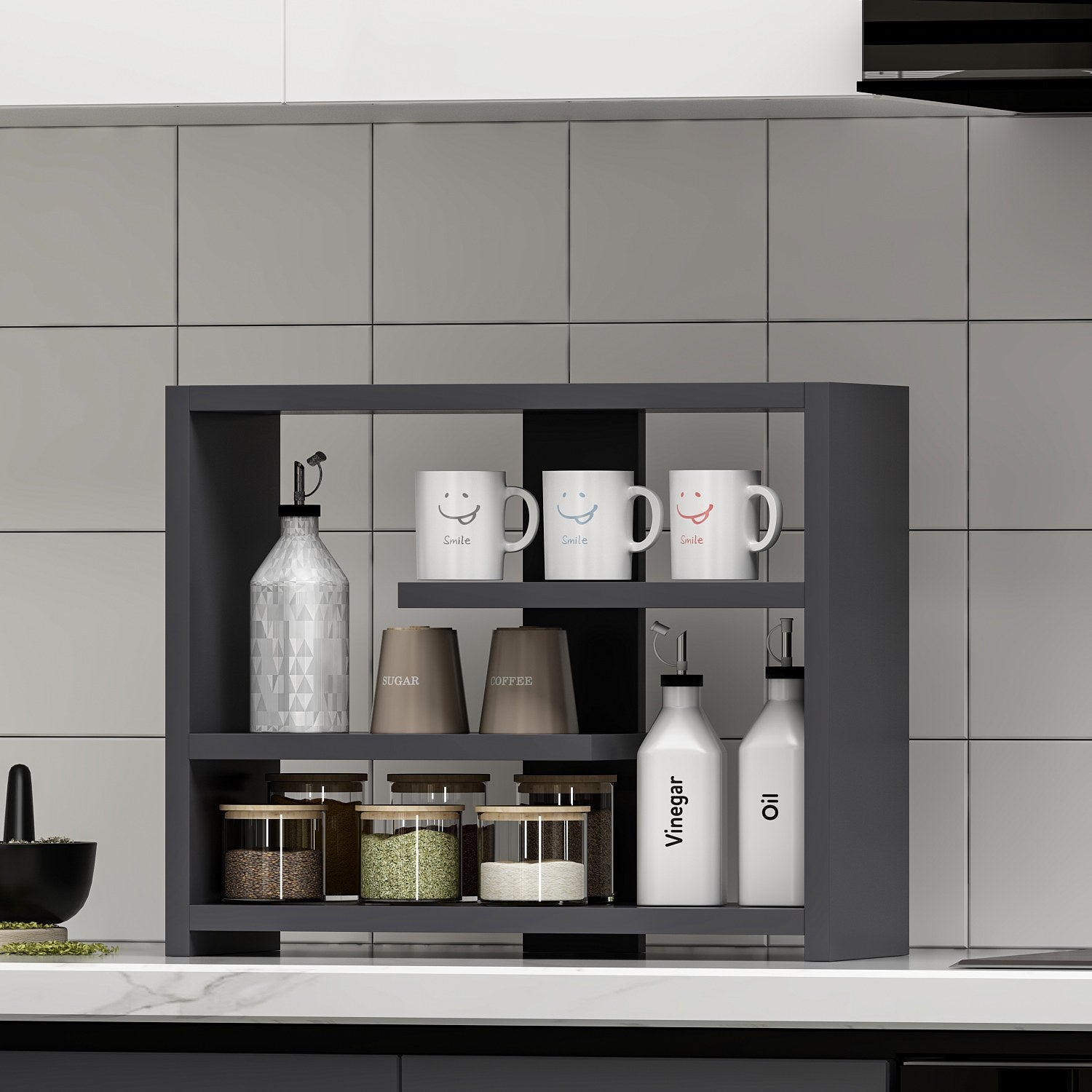 A cor antracite desta prateleira de parede dá um toque de sofisticação a qualquer divisão. As suas linhas simples e o design minimalista combinam facilmente com qualquer decoração existente, tornando-a numa adição perfeita à sua casa. Quer o seu estilo seja contemporâneo, tradicional ou intermédio, esta prateleira de parede irá melhorar a estética geral do seu espaço.