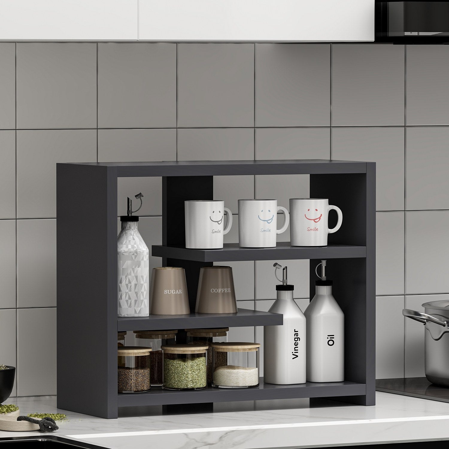 Prateleira de parede – 48,6x40x21,4 cm – Antracite – Painel de partículas revestido a melamina