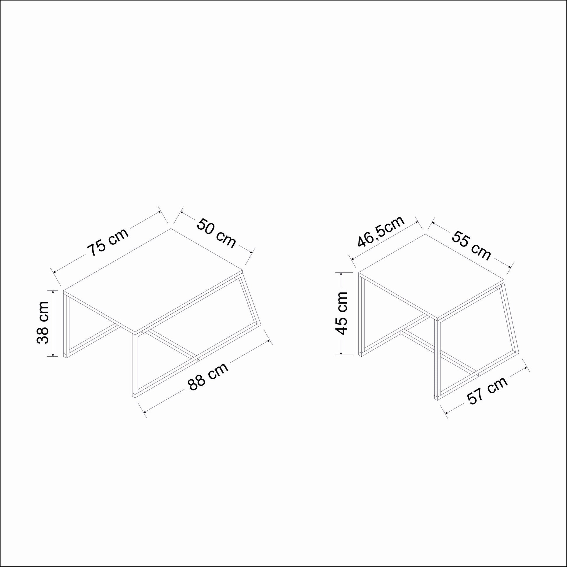 - Mesas Pequenas: Largura 55cm, Altura 45cm, Profundidade 57cm