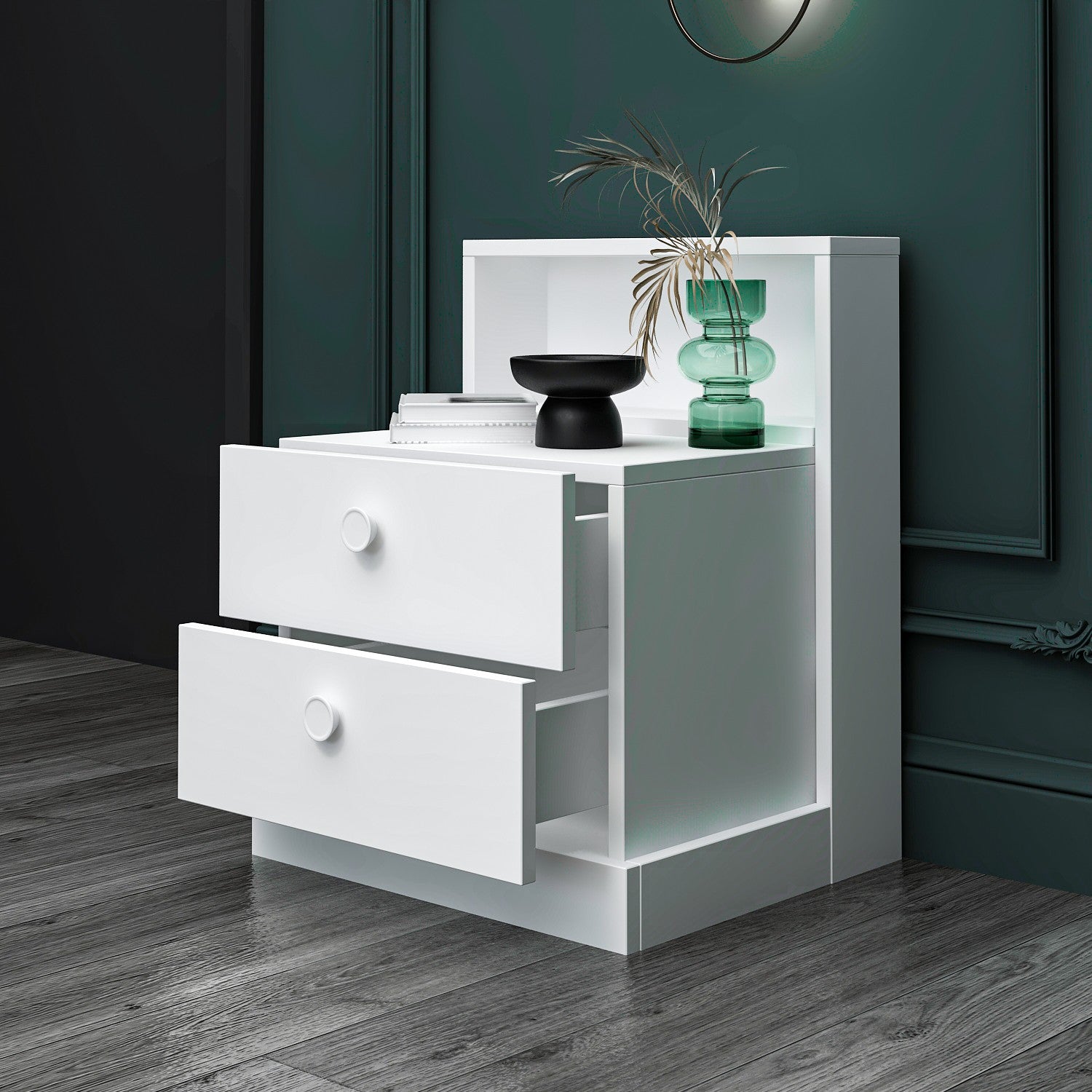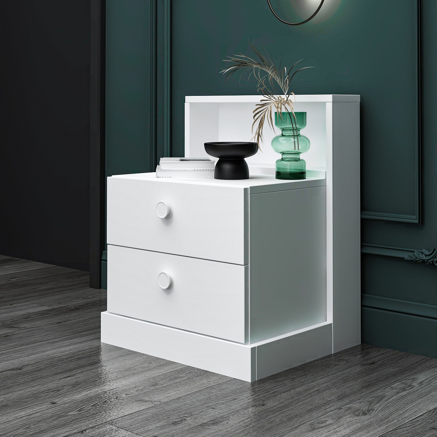 Imagine chegar a casa depois de um longo dia e encontrar conforto na presença calmante da nossa mesa de cabeceira. A sua cor branca pura confere uma sensação de tranquilidade ao seu quarto, criando um santuário onde pode descontrair e relaxar.