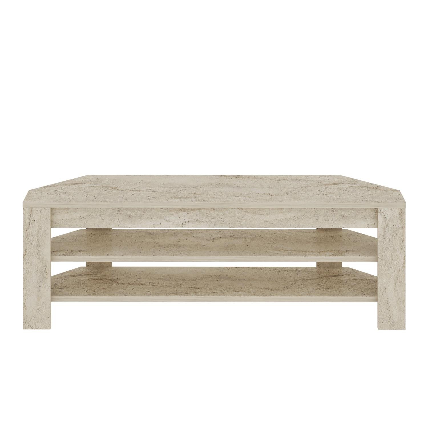 Com várias prateleiras, este suporte para TV oferece um amplo espaço de arrumação para todos os seus dispositivos multimédia, DVD's e muito mais. Mantenha a sua sala de estar arrumada e organizada enquanto exibe o seu televisor com estilo. O design moderno e a cor travertino dão um toque de luxo a qualquer divisão.