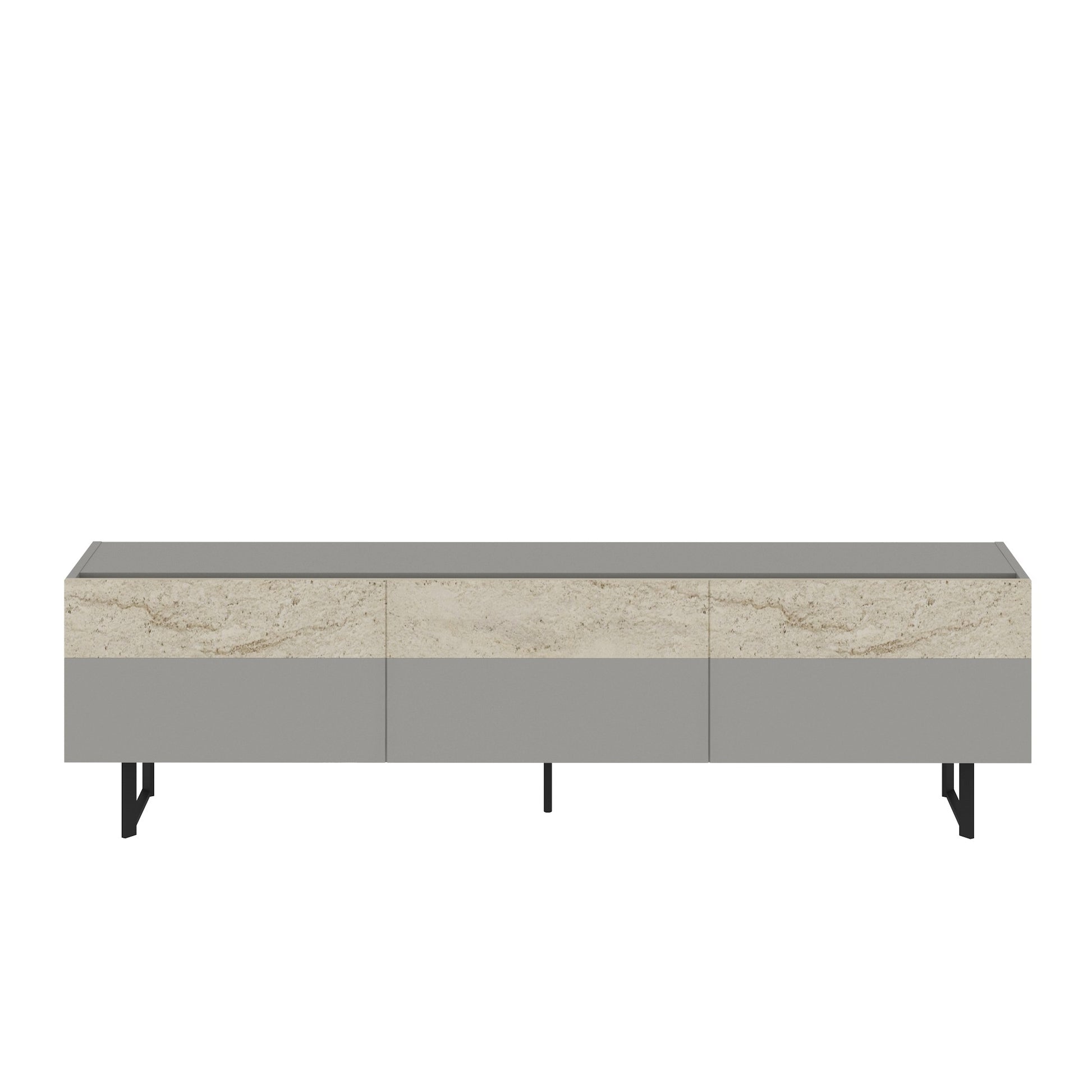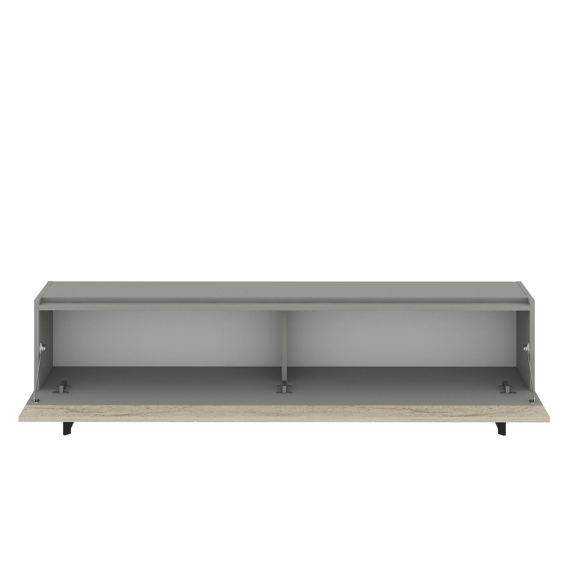 Móvel de TV – 180 cm x 49 cm x 37 cm – Cinzento e Travertino – Painéis de partículas revestidos a melamina