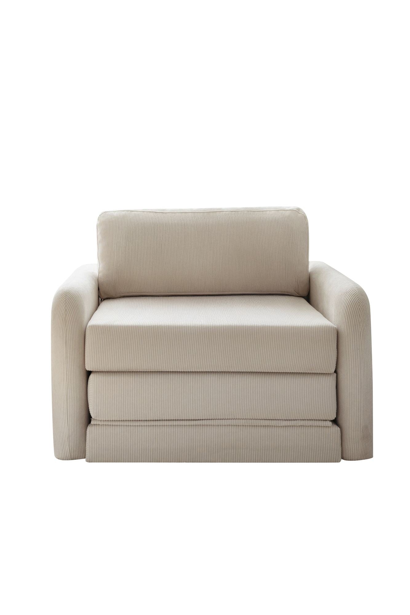 Tamanho Compacto: Com uma largura de 110 cm, altura de 77 cm e profundidade de 83 cm, este sofá-cama é perfeito para espaços pequenos. A altura do assento de 48 cm garante fácil acesso e conforto para todos os usuários.