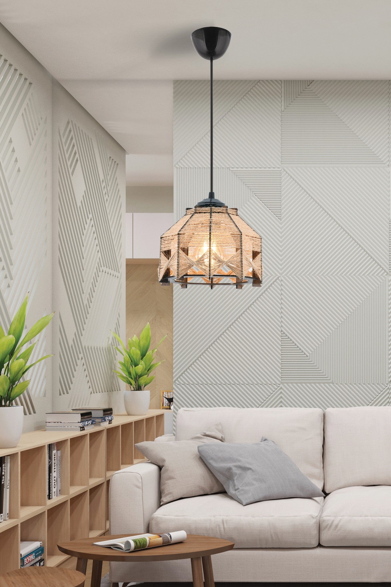 O suave brilho da luz que passa pelo corpo de madeira e pela capela de juta cria uma ambiência quente e convidativa que fará você nunca querer sair de casa. Seja recebendo um jantar ou desfrutando de uma noite tranquila em casa, este lustre criará o clima perfeito para qualquer ocasião.
