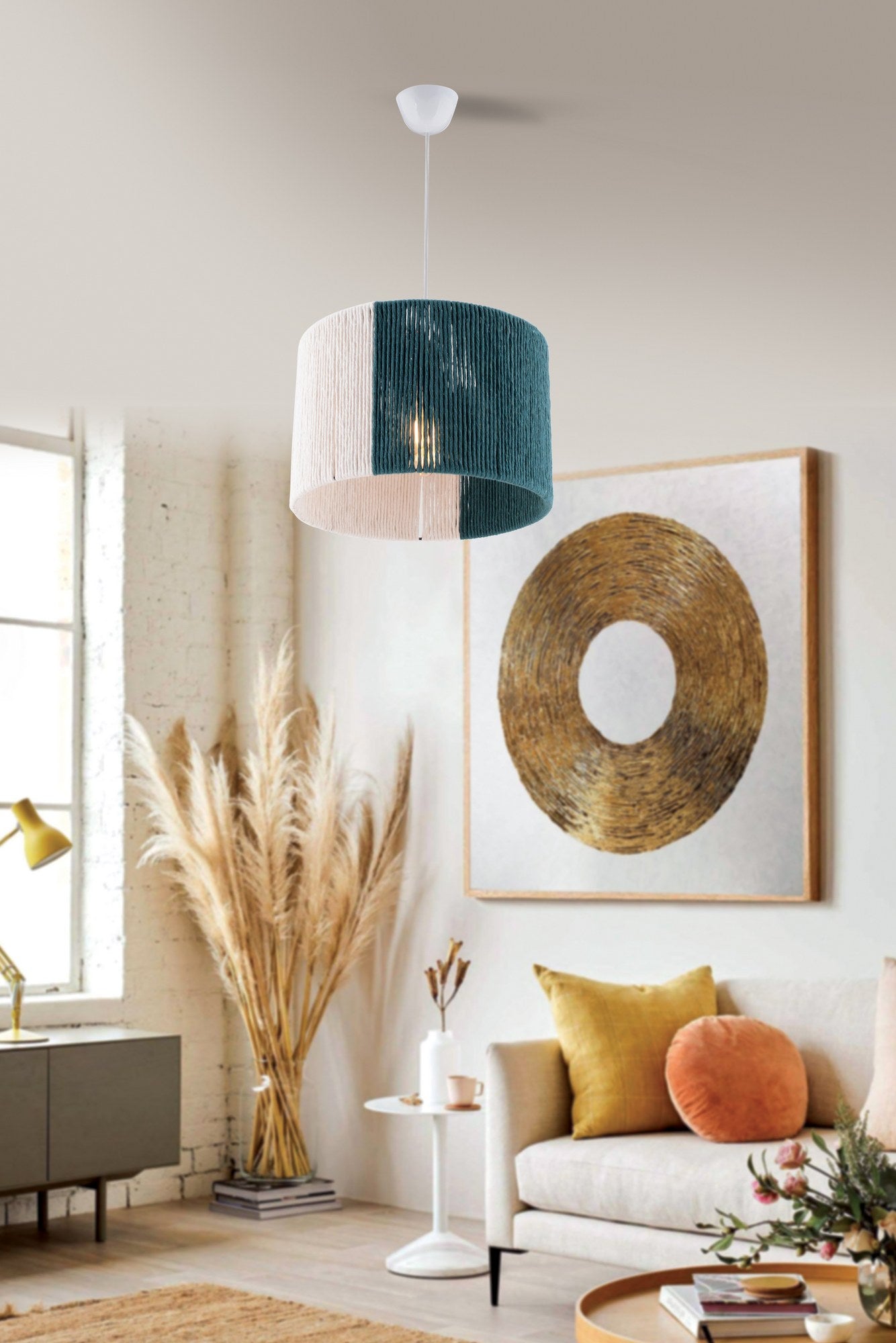 Candeeiro de Teto – 30 x 30 cm – Verde e Branco – Metal e Juta