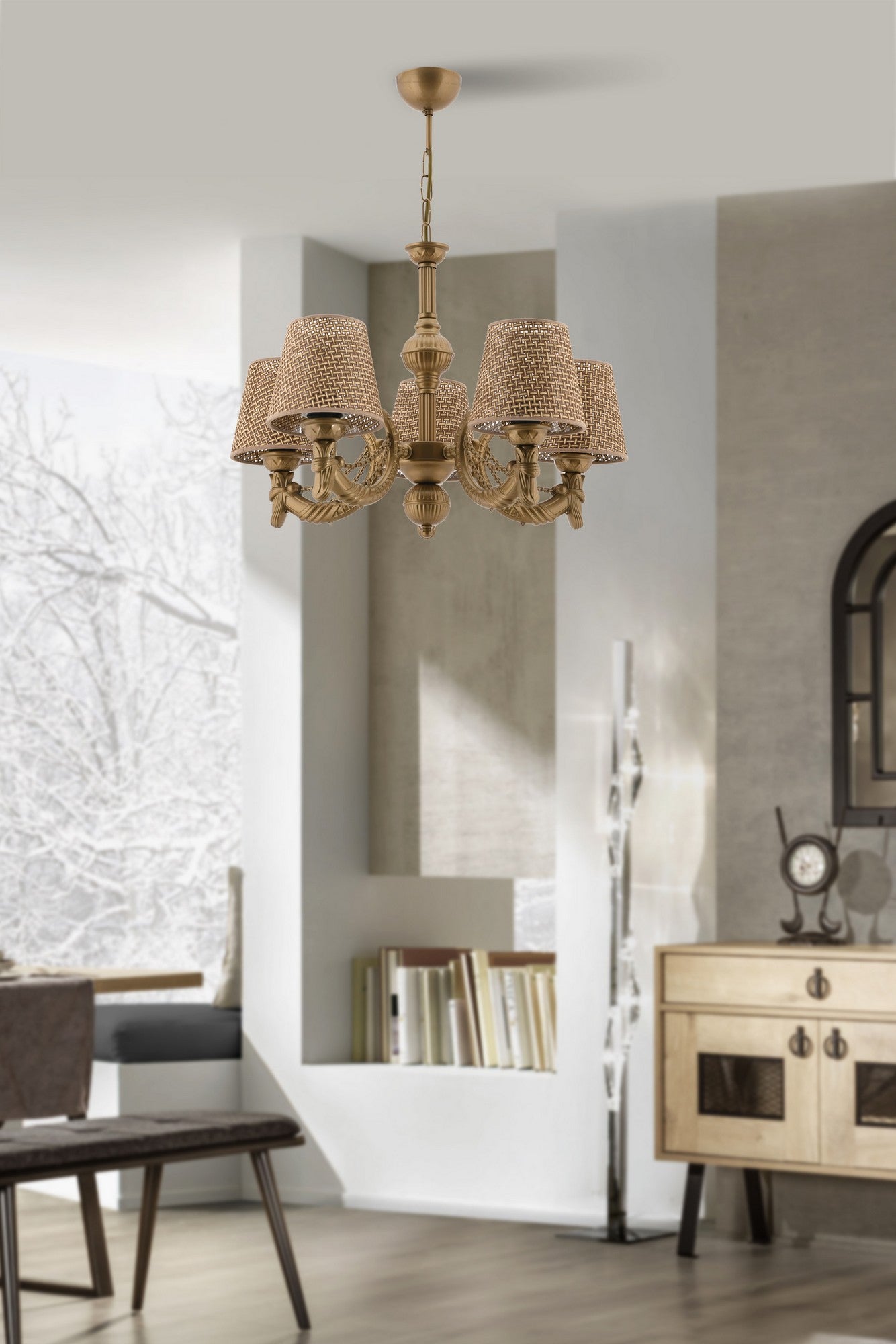 Transforme seu espaço de estar em um refúgio luxuoso e elegante com nosso lustre deslumbrante. A intrincada corpo de metal e tampa de tecido exala sofisticação e estilo, tornando -o a peça central perfeita para qualquer sala.
