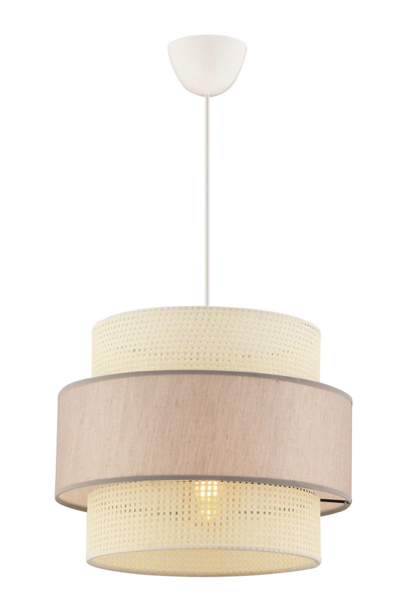 Transforme o seu espaço de vida com o nosso deslumbrante candeeiro de corpo metálico. Esta peça requintada apresenta uma tampa em tecido numa bela combinação de branco e bege, acrescentando um toque de elegância a qualquer divisão. O tamanho da tampa de 30 x 30 cm e a altura de 27 cm criam um ponto focal impressionante, enquanto a altura total de 65 cm torna-o perfeito para pendurar numa variedade de espaços.