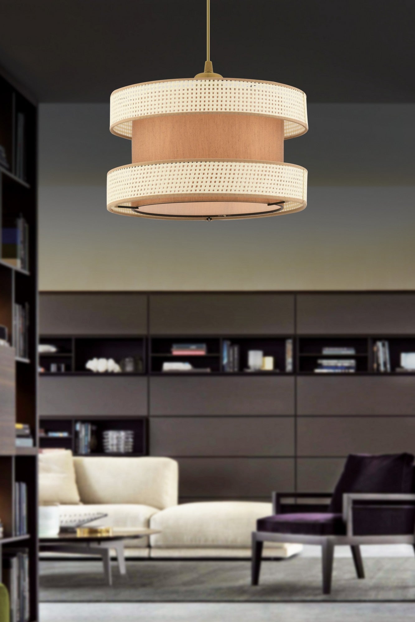 Candeeiro de Teto – 40 x 40 cm – Branco e Castanho – Metal e Algodão
