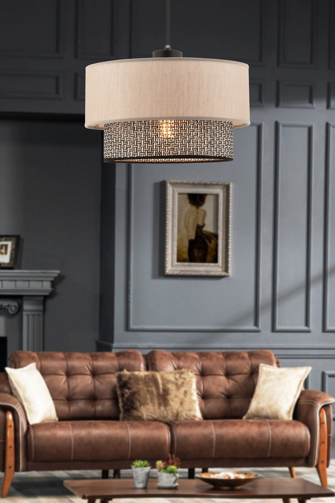 Candeeiro de Teto – 65 cm – Cinza e Bege – Metal