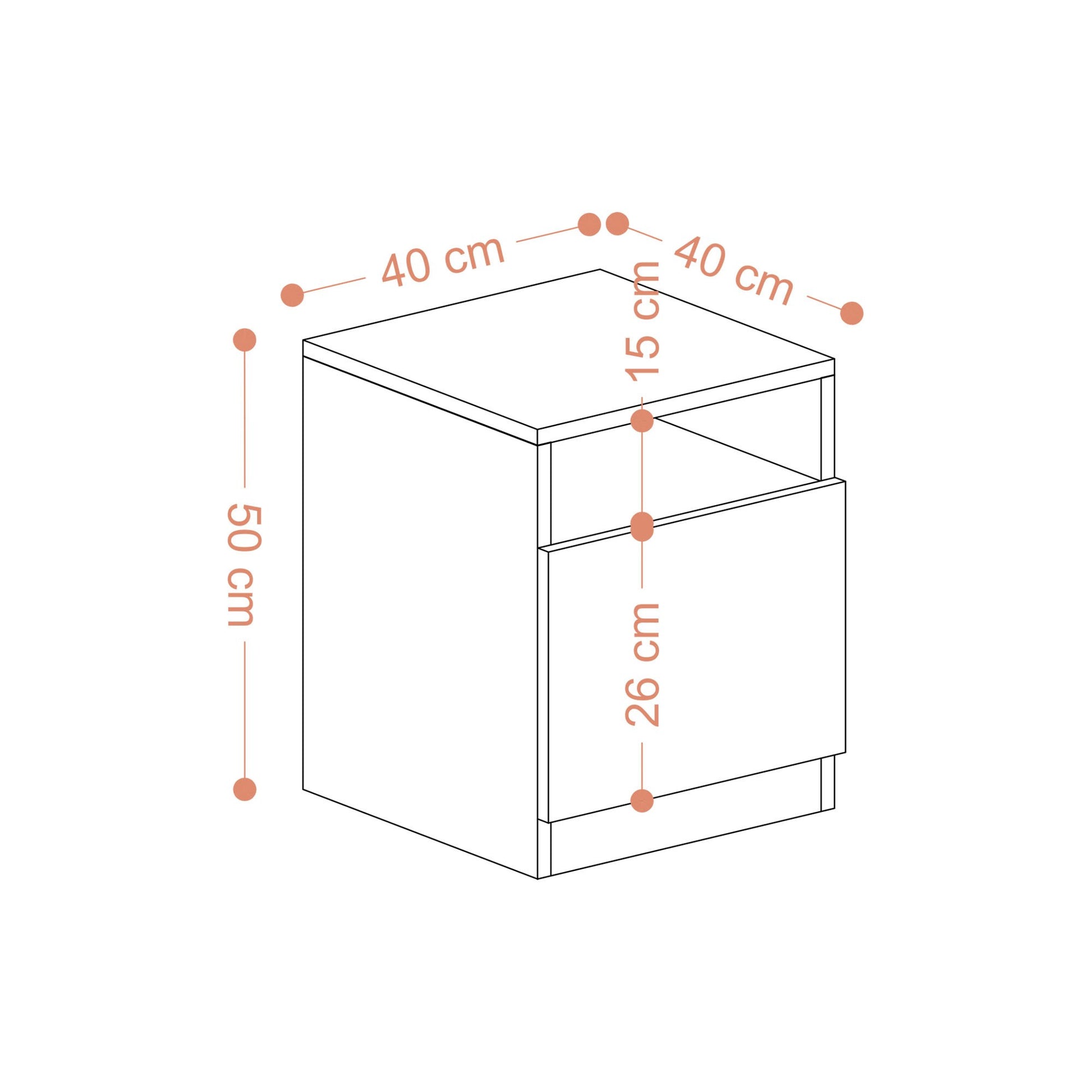 Com as suas dimensões generosas de 40 cm de largura, 50 cm de altura e 40 cm de profundidade, a nossa mesa de cabeceira oferece um amplo espaço de arrumação para todos os seus objectos essenciais na hora de dormir. Quer se trate de livros, copos ou um copo de água, pode manter tudo ao alcance da mão, garantindo um quarto organizado e sem desordem.