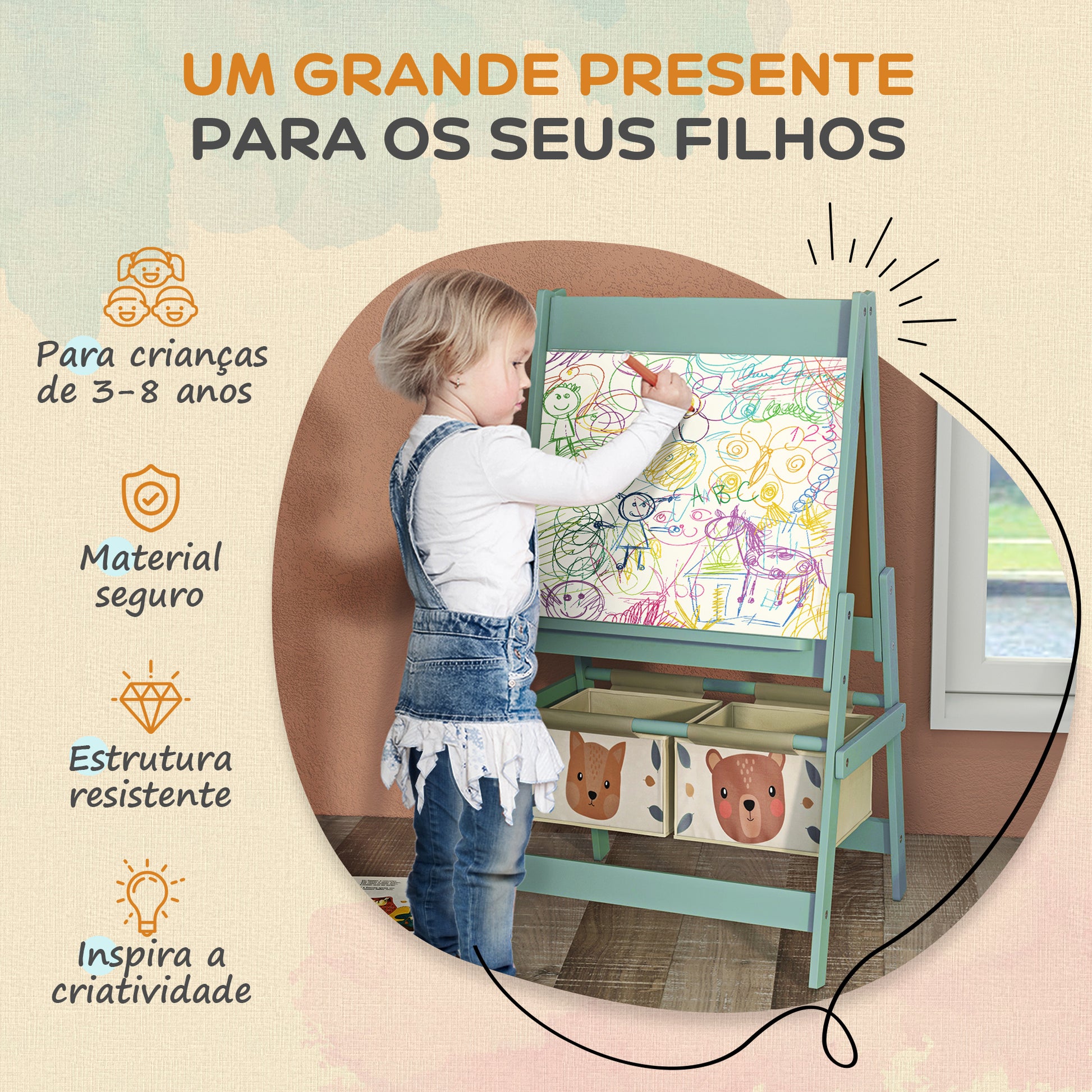 Cavalete Infantil 3 em 1 – 54x46,5x93 cm – Verde – MDF e madeira de pinho
