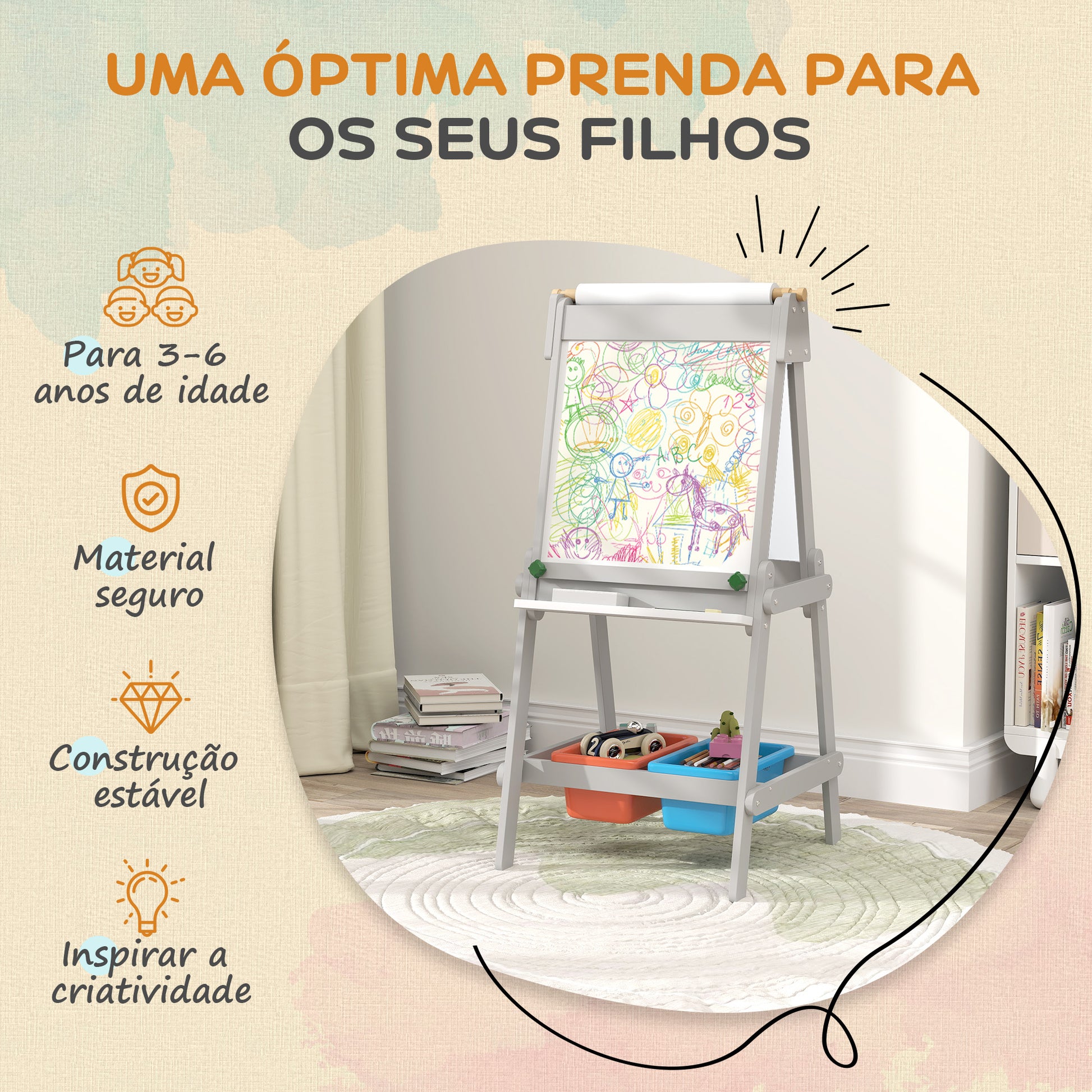 Aproveite este cavalete de pintura infantil para proporcionar momentos de diversão e aprendizagem para os pequenos artistas em casa.