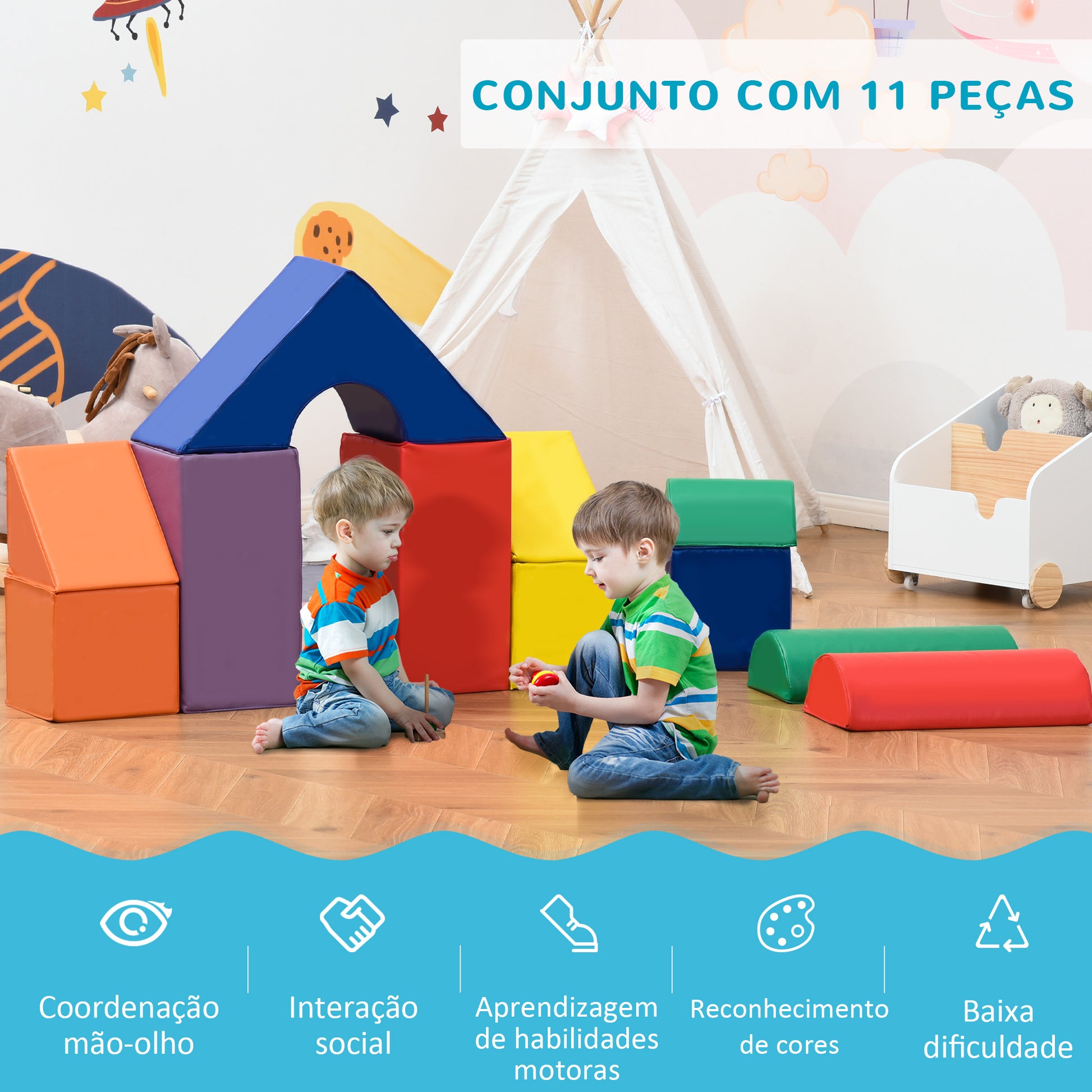 Estimule o desenvolvimento de habilidades motoras das crianças com este conjunto de 11 blocos de espuma multicoloridos. Ideal para diversão e aprendizagem desde a primeira infância.