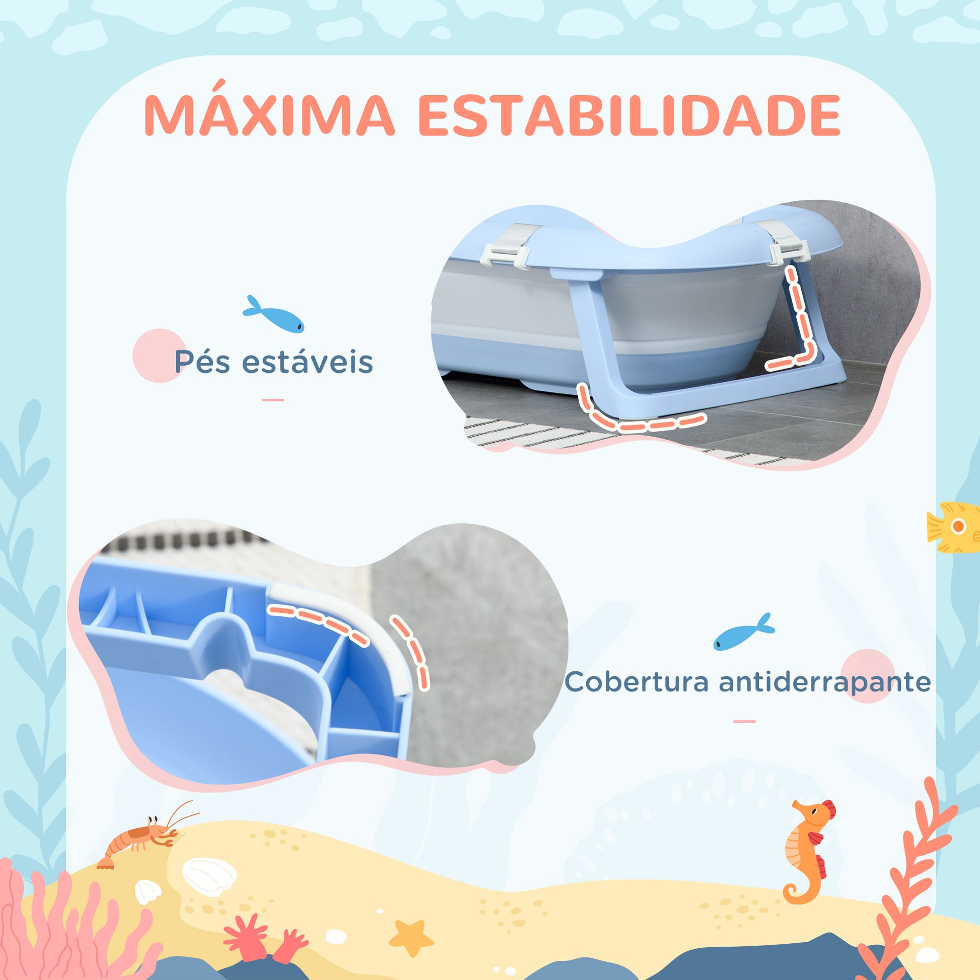 A Banheira para Bebé Recém Nascido Dobrável em azul claro é o acessório perfeito para tornar o banho do seu bebé mais seguro e confortável. Com medidas de 83x48x23,5 cm, esta banheira dobrável é ideal para bebés desde o nascimento.