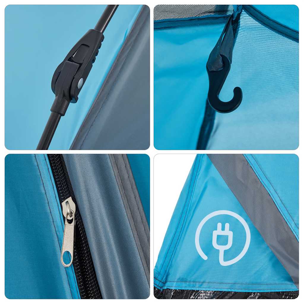 - Acesso conveniente para cabo elétrico: a porta E permite-lhe ligar facilmente um cabo de extensão de uma fonte de alimentação externa à sua tenda.