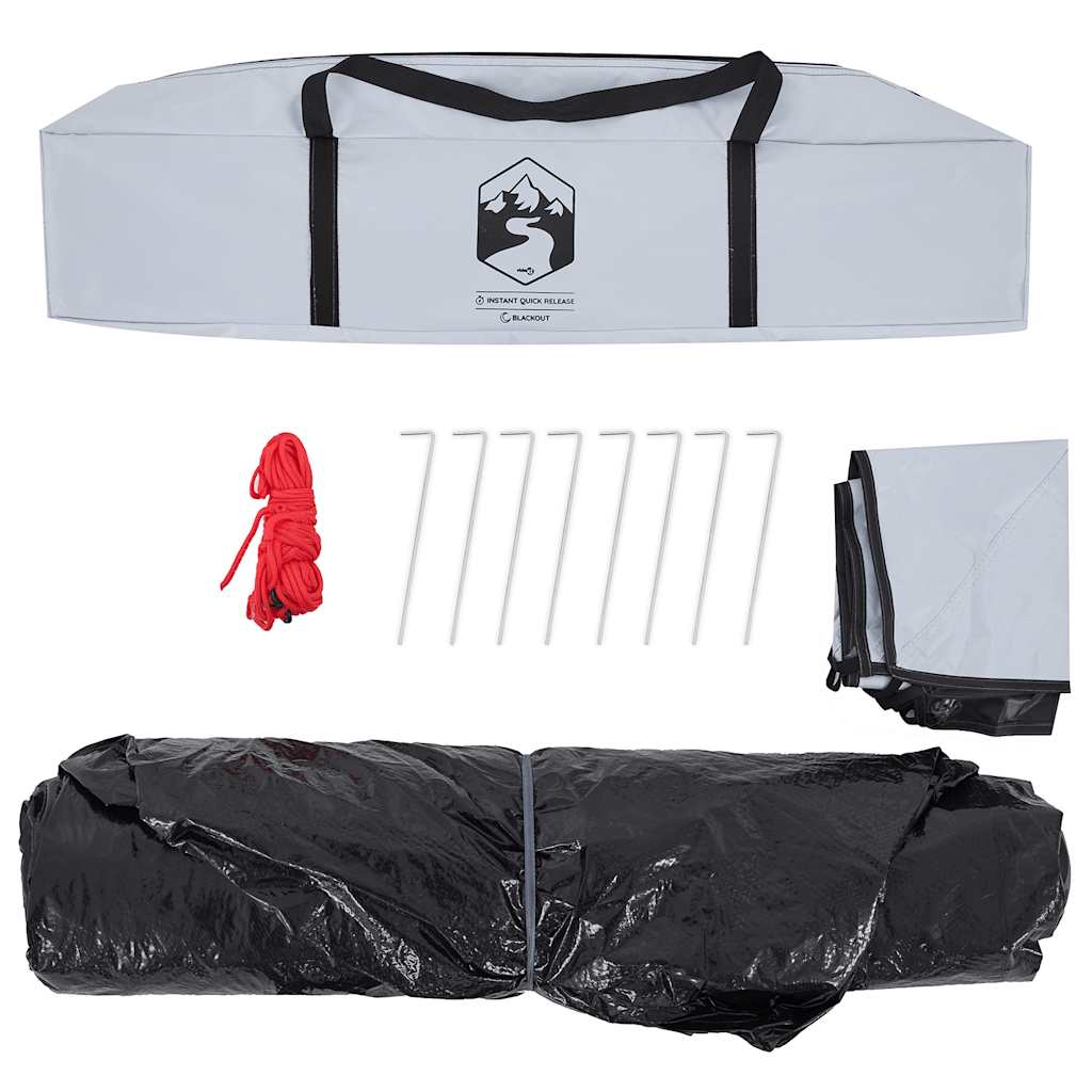 - Cobertura impermeável removível: a cobertura impermeável removível pode ser anexada ao topo da tenda para proteção contra intempéries e privacidade.
